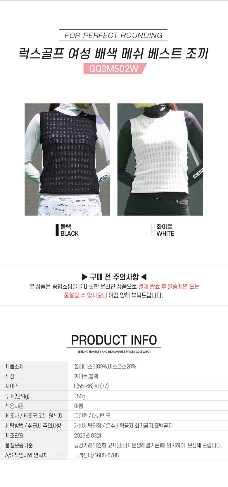 럭스골프 GQ3M502W 여성 배색 메쉬 베스트 조끼