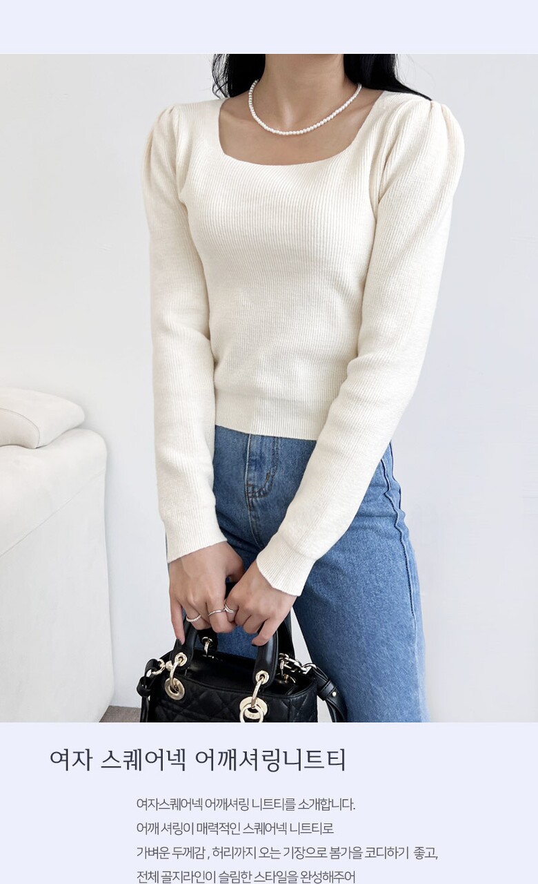 #여자상의 #여성상의 #여자니트 #스퀘어넥 #셔링니트 #어깨셔링니트 #여성스러운니트