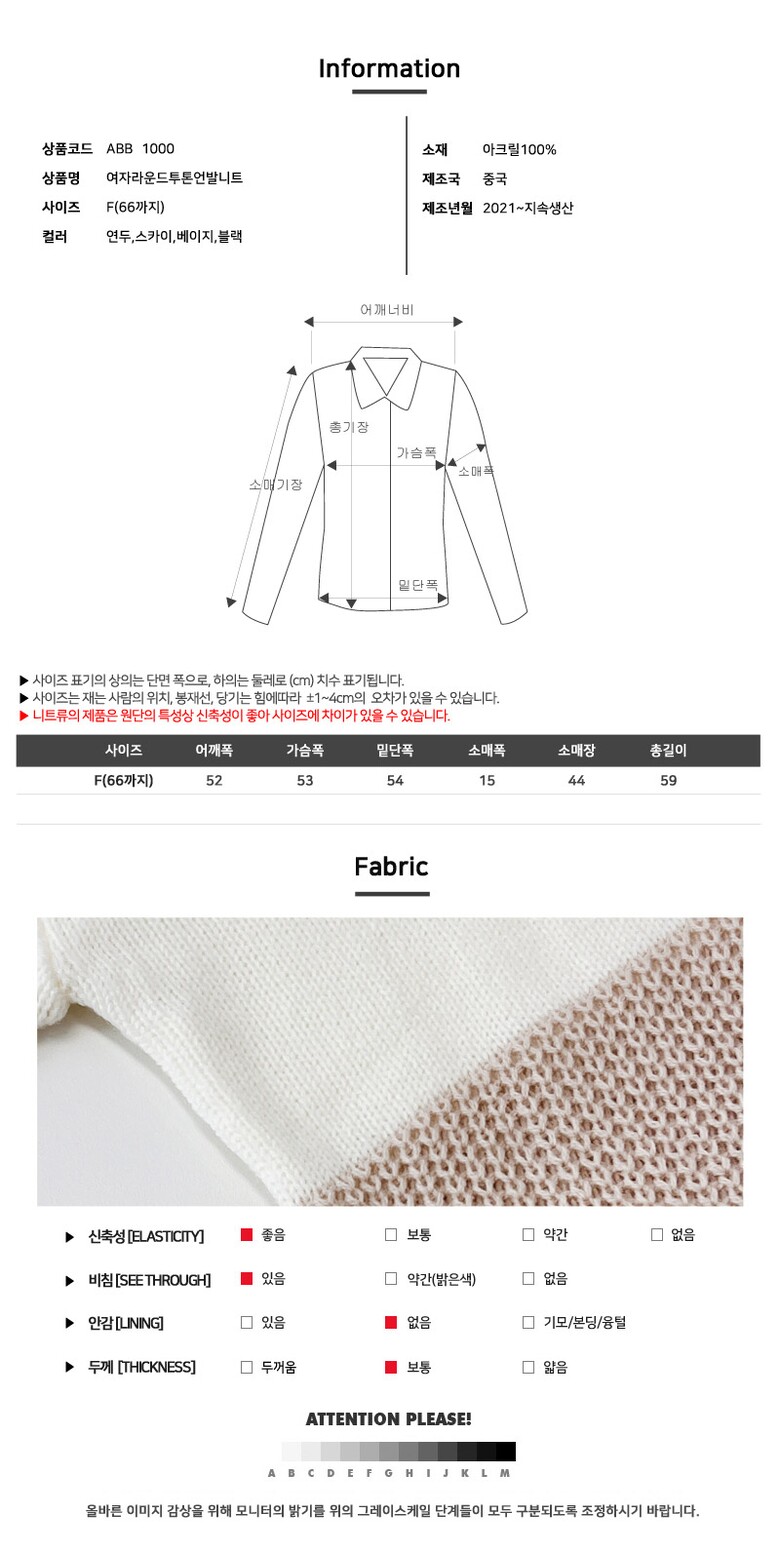 여자 라운드 투톤 언발 니트