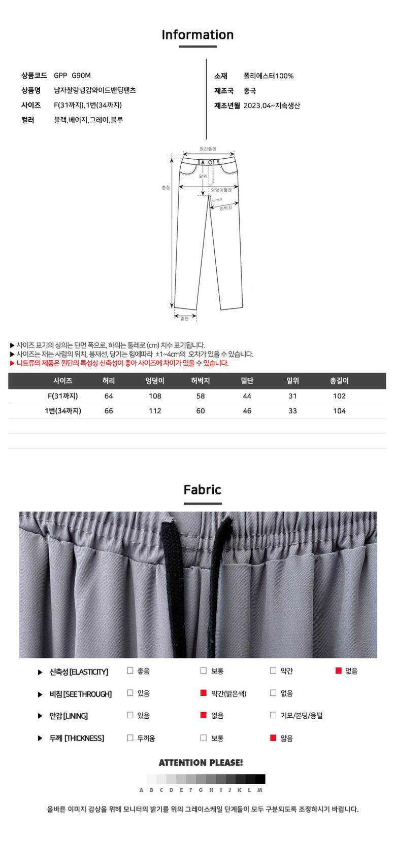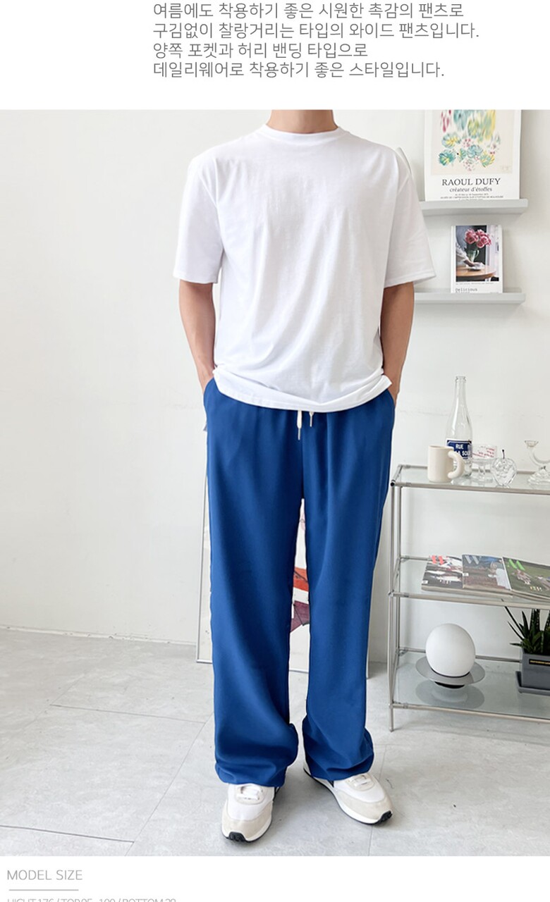 남자 찰랑 냉감 와이드 밴딩 팬츠