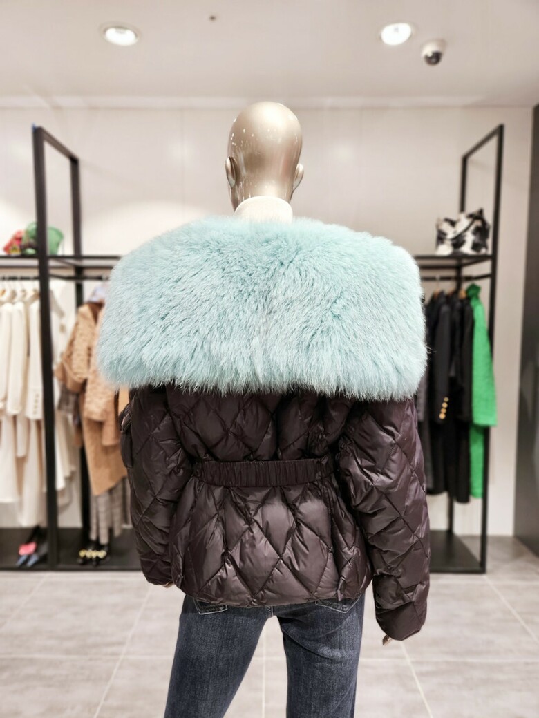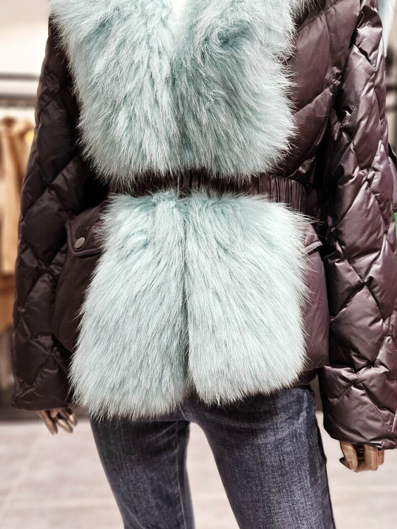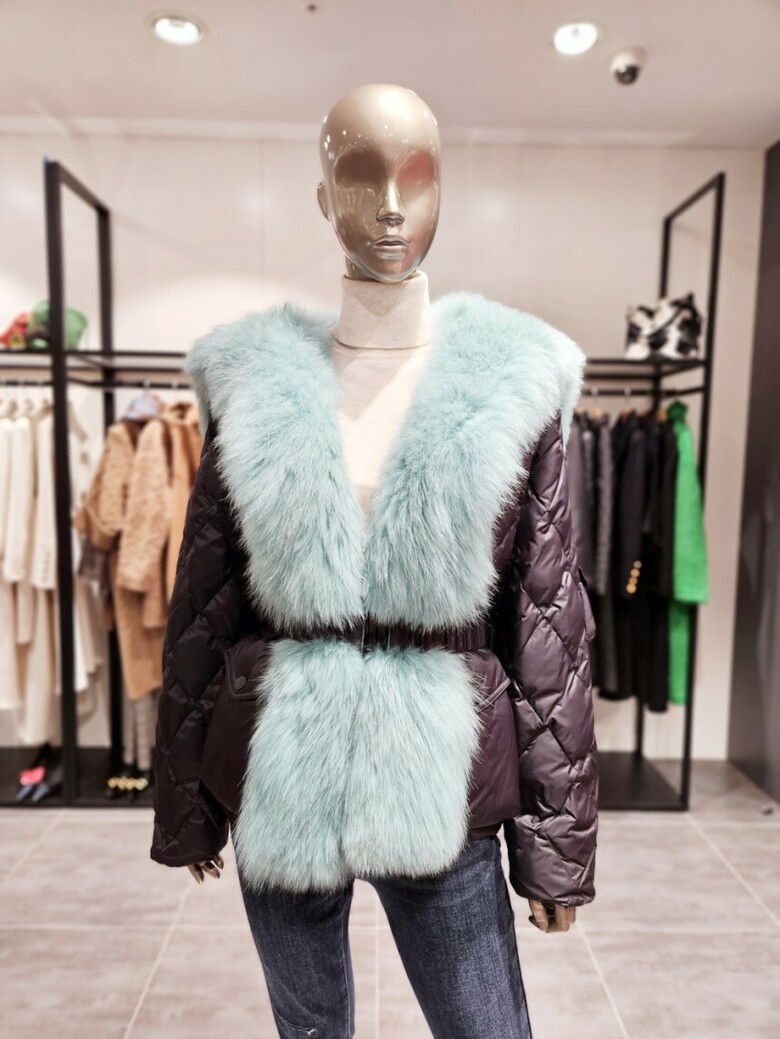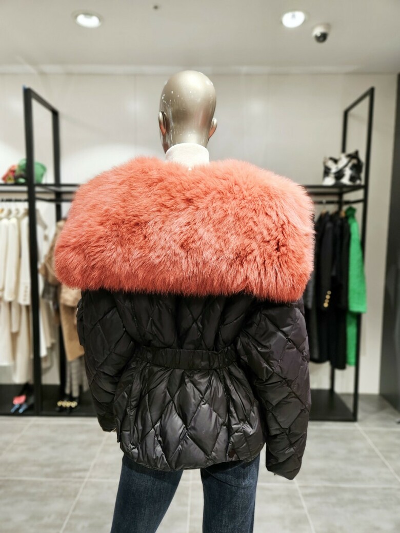 | 1. 제품 소재 (섬유의 조성 또는 혼용률을 백분율로 표시, 기능성인 경우 성적서 또는 허가서) | 겉감: 나일론 100% 안감: 나일론 100% 배색:폭스:100% 충전재:오리솜 |