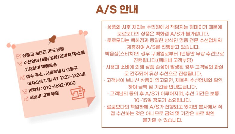| 8. A/S 책임자와 전화번호 | 마리오 아울렛 고객센터에 문의 바랍니다 |