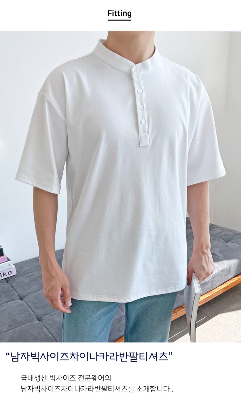 남자 빅사이즈 차이나 카라 반팔 티셔츠