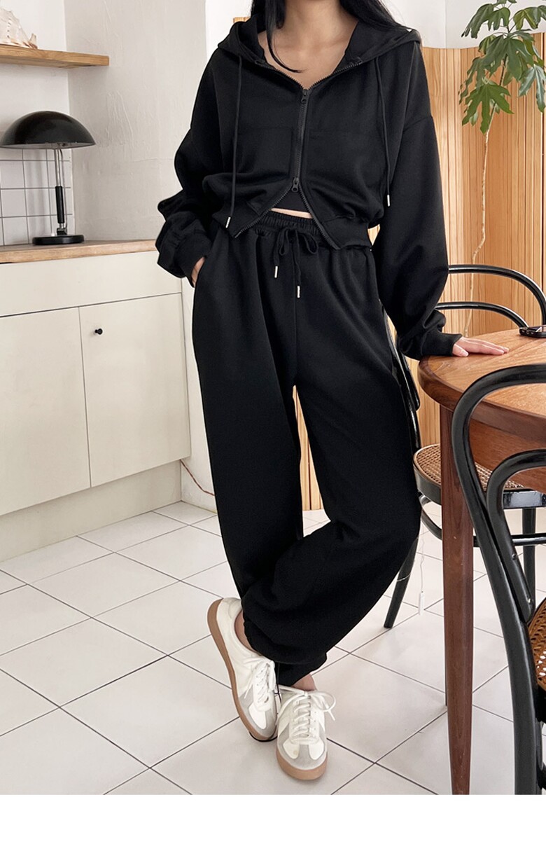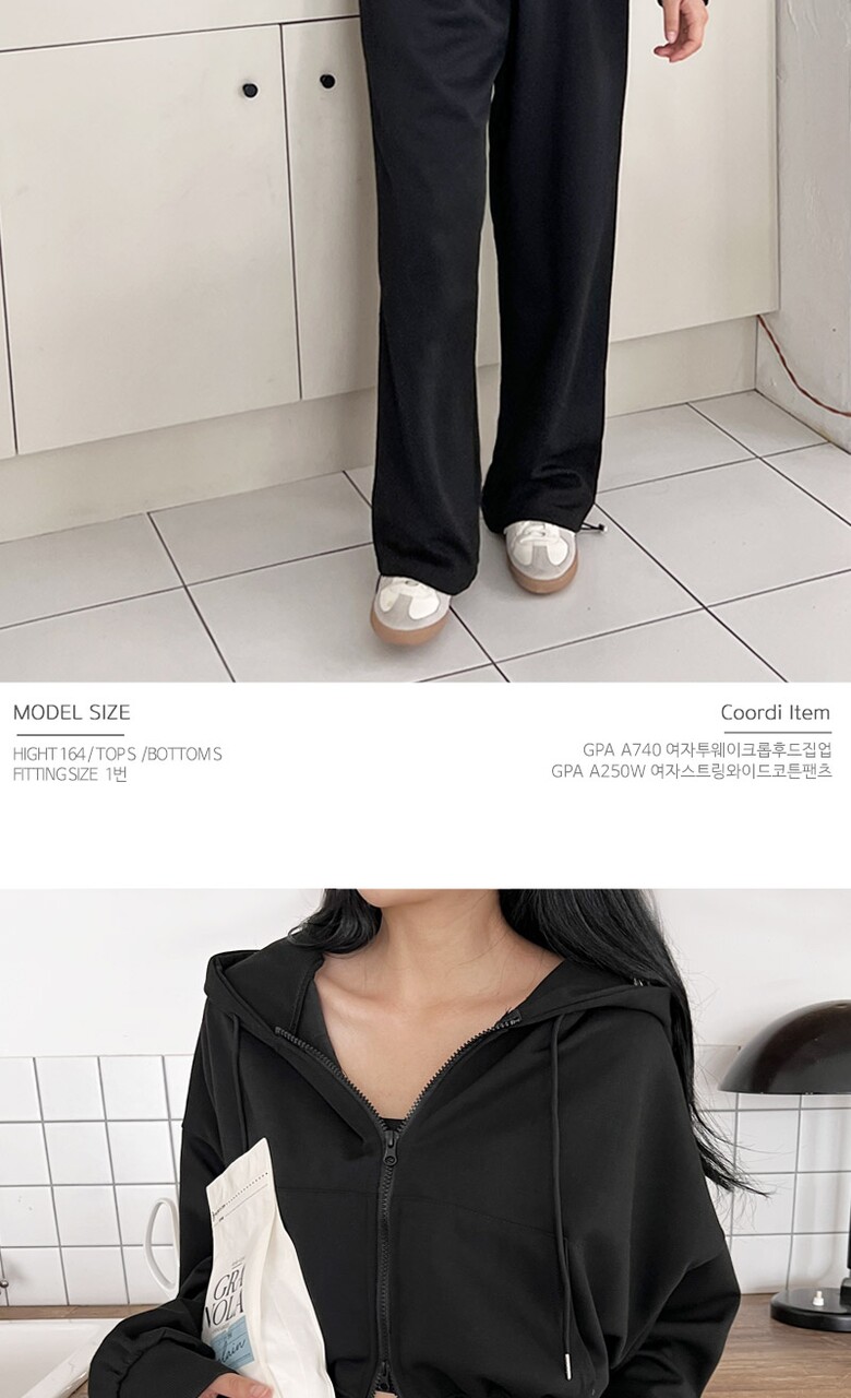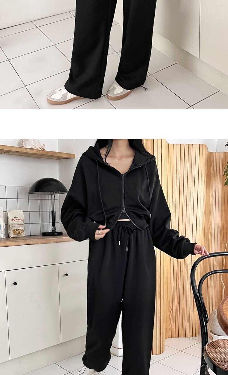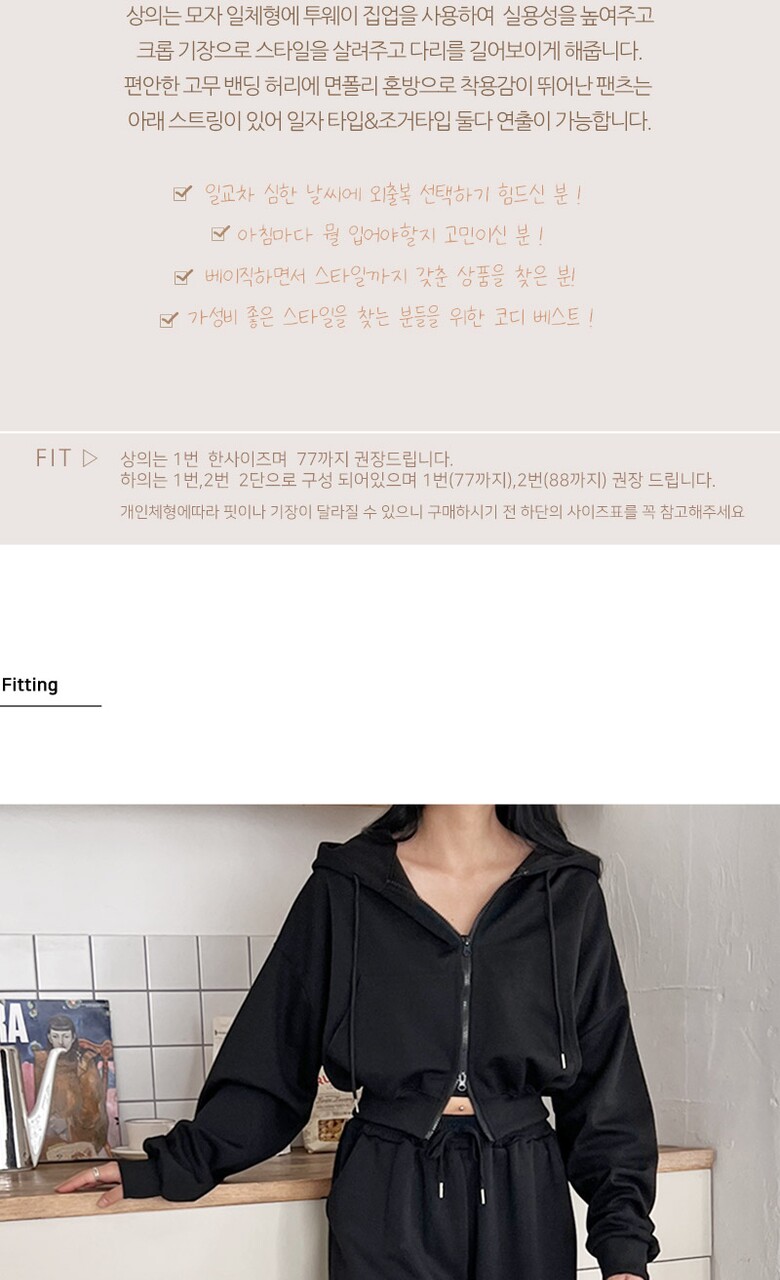 여자 크롭 후드 집업 스트링 와이드 팬츠 세트