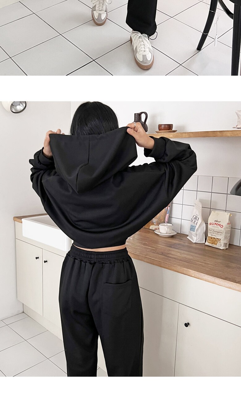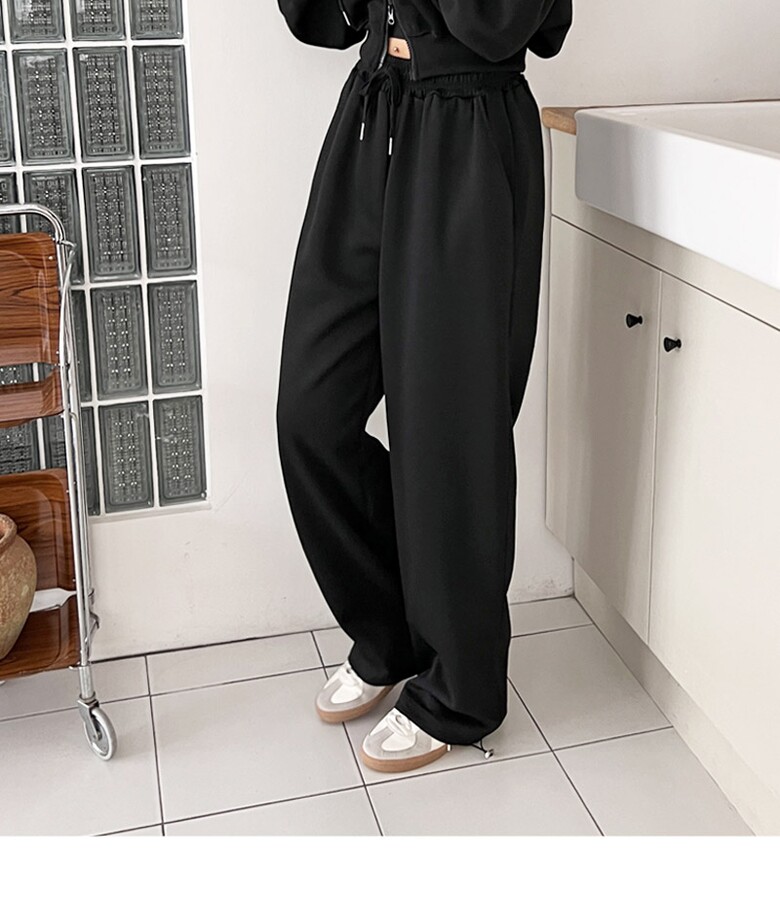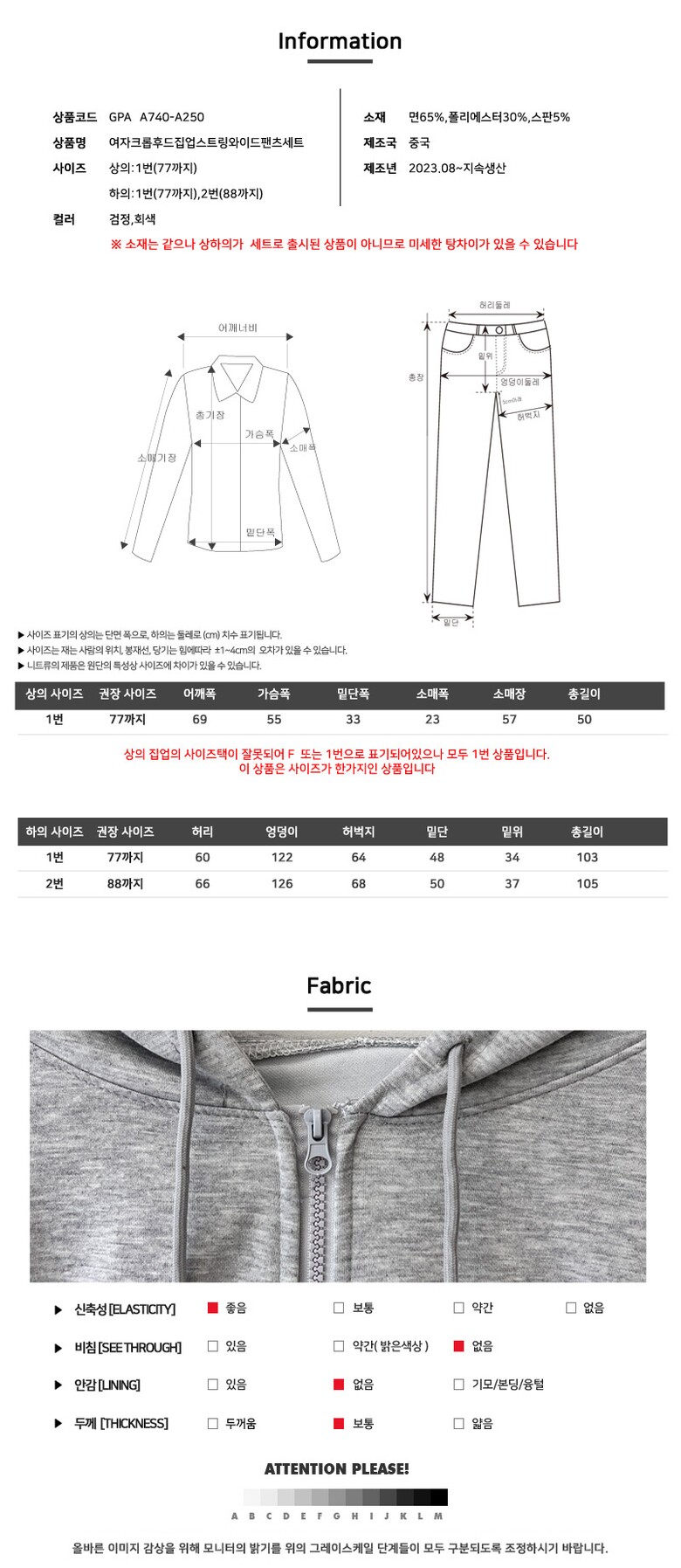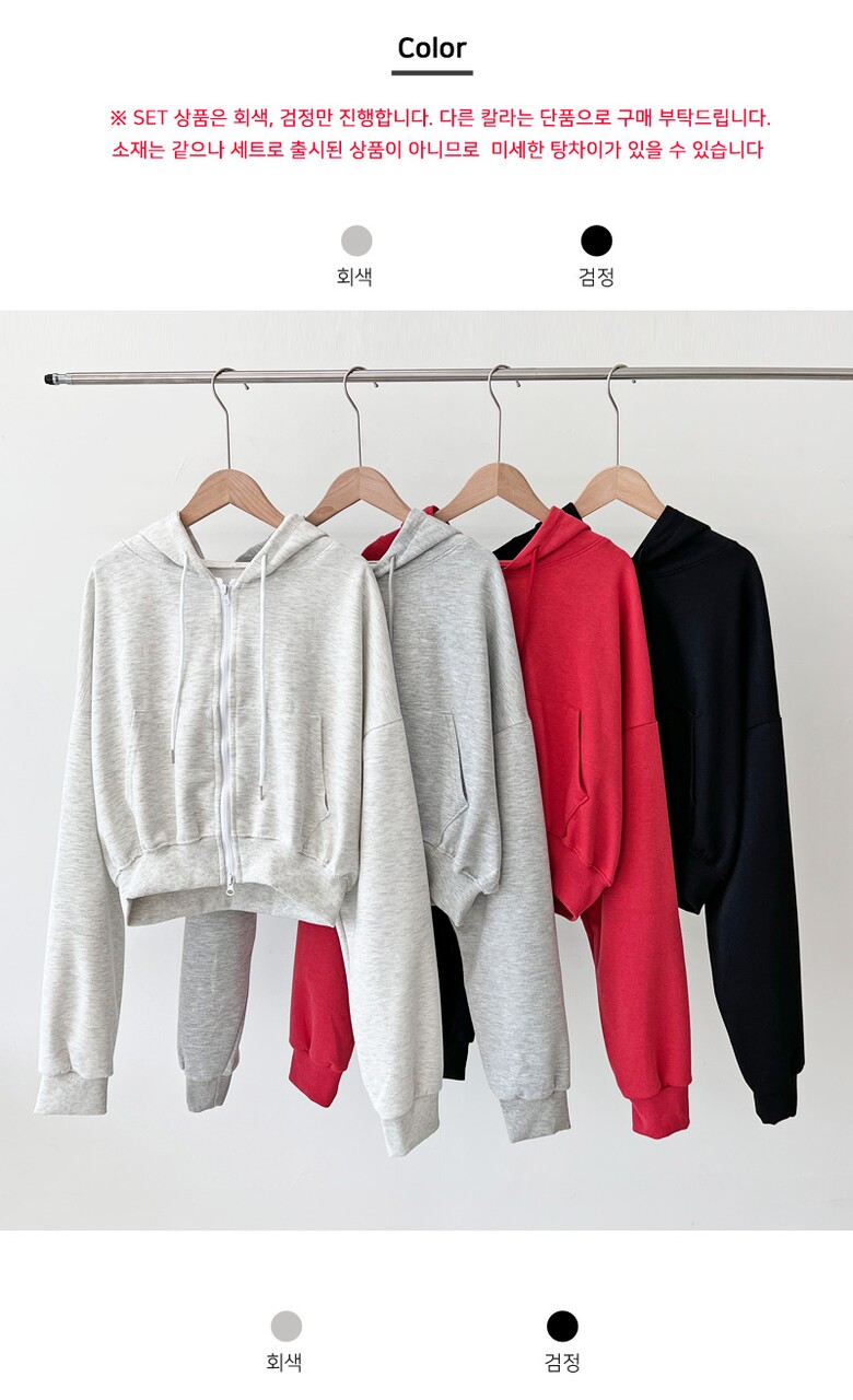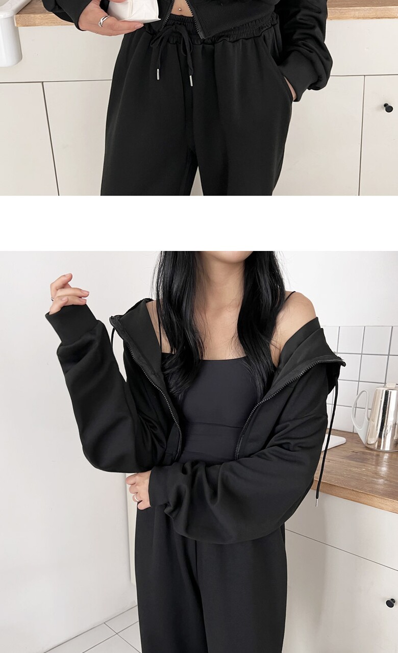 여자 크롭 후드 집업 스트링 와이드 팬츠 세트