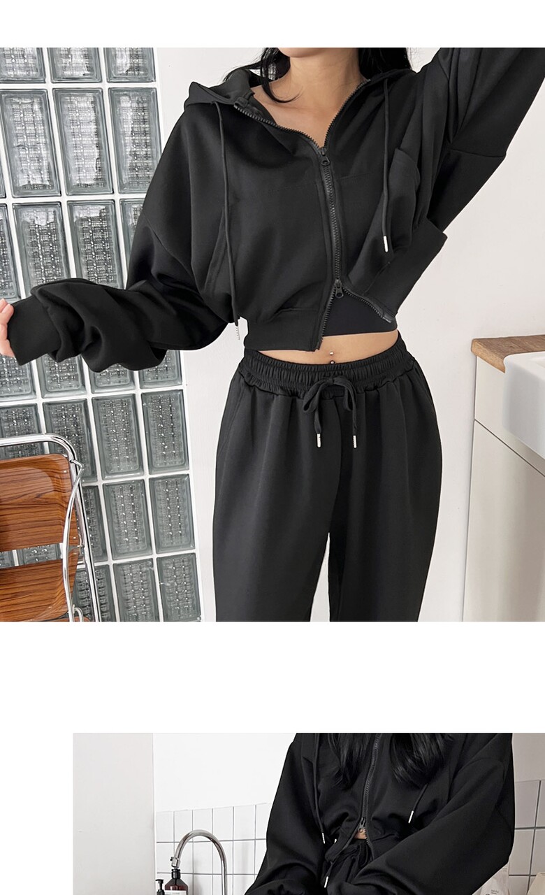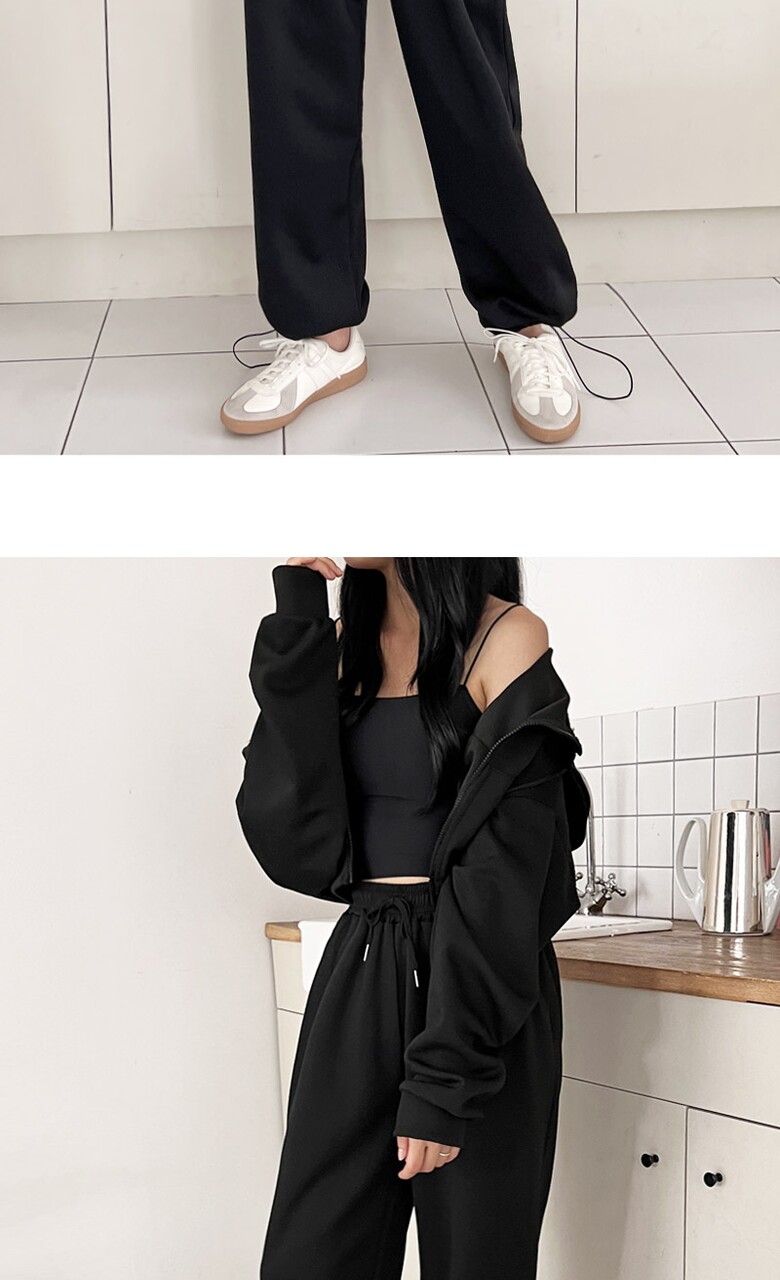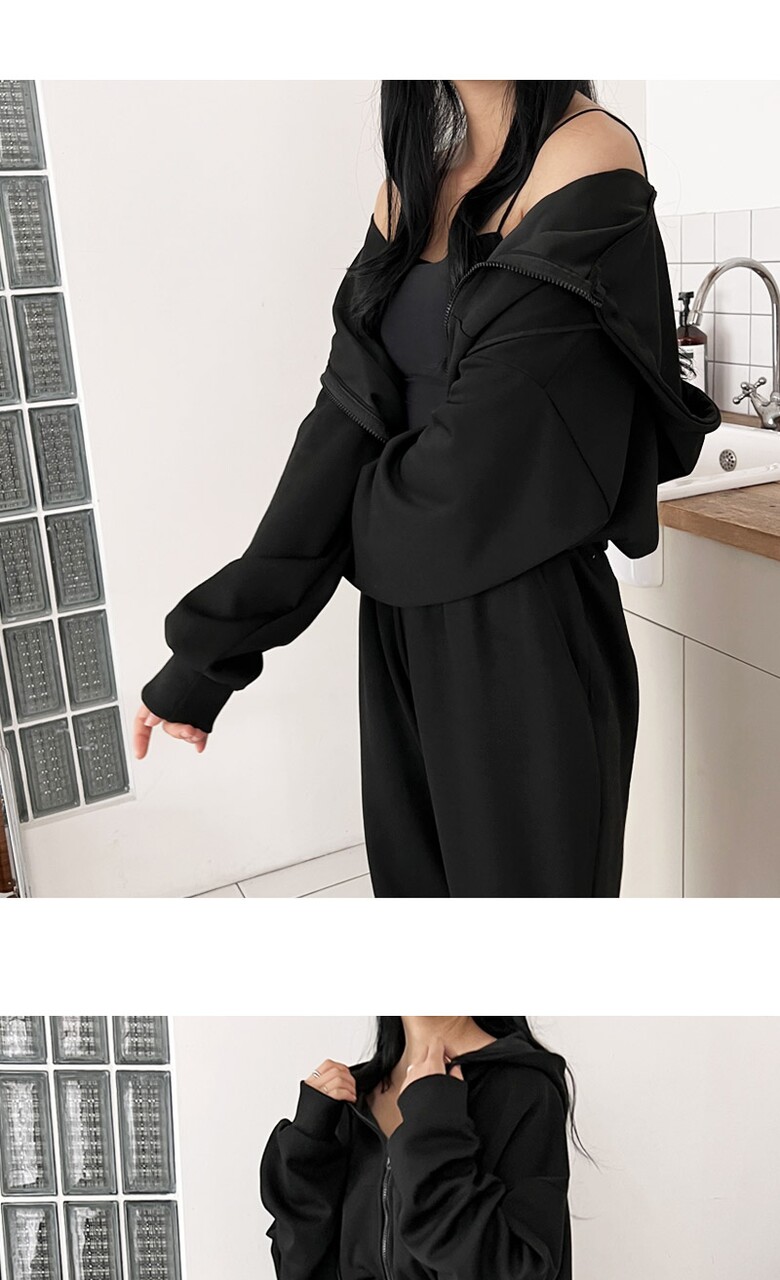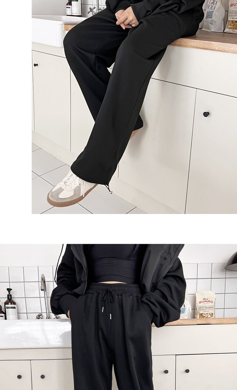 여자 크롭 후드 집업 스트링 와이드 팬츠 세트