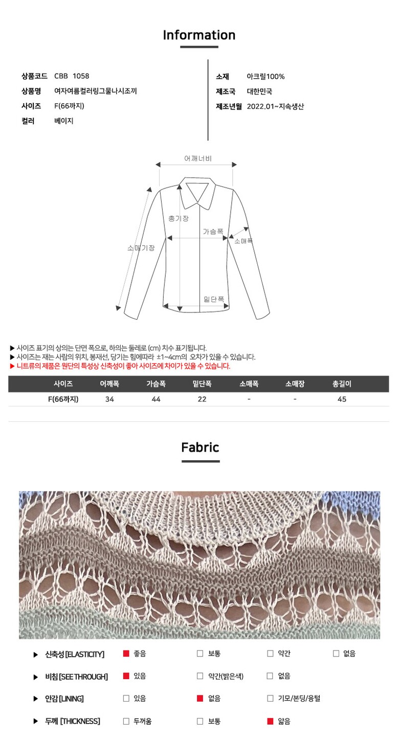 | 1. 제품 소재 (섬유의 조성 또는 혼용률을 백분율로 표시, 기능성인 경우 성적서 또는 허가서) | 상세설명참고 |