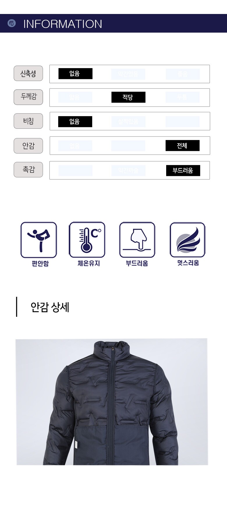 | 1. 제품 소재 (섬유의 조성 또는 혼용률을 백분율로 표시, 기능성인 경우 성적서 또는 허가서) | 상세설명참고 |