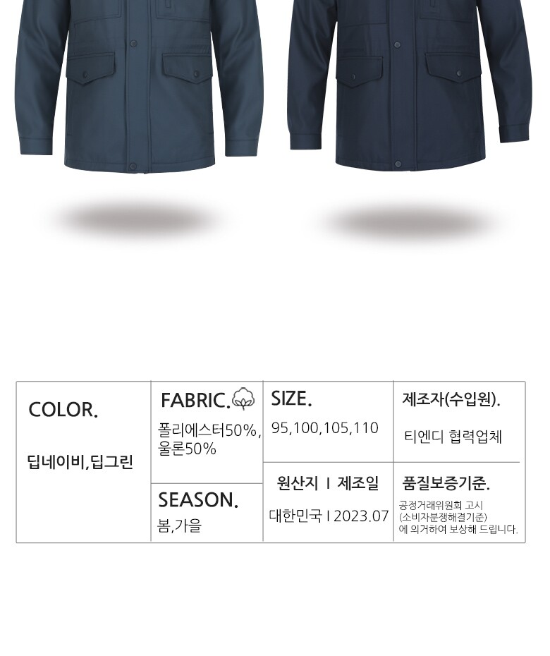 1. 제품 소재 (섬유의 조성 또는 혼용률을 백분율로 표시, 기능성인 경우 성적서 또는 허가서) 상세설명참고