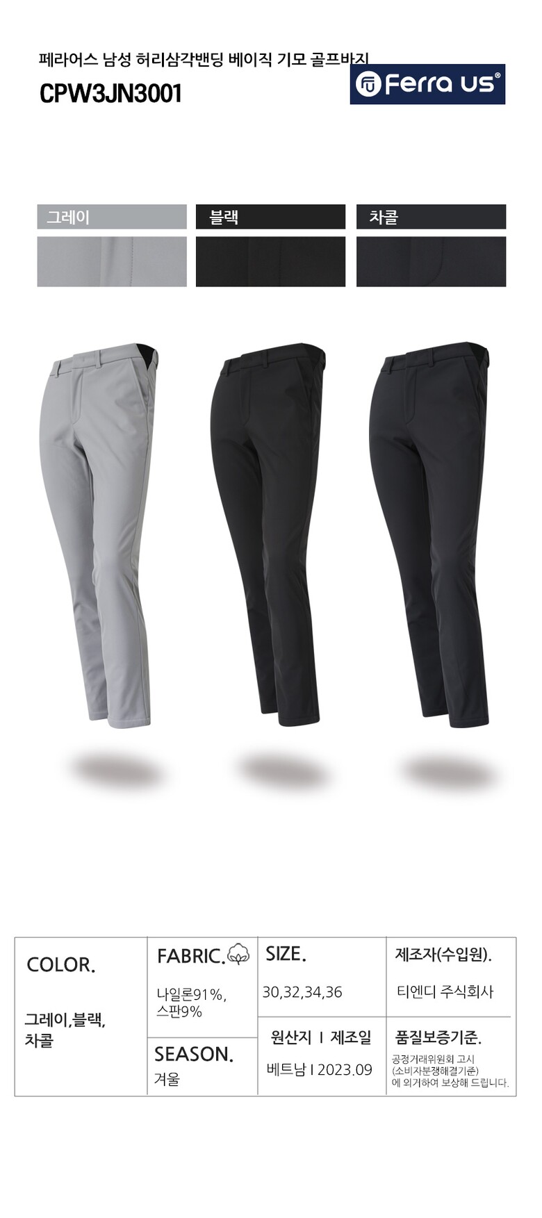 페라어스 남성 허리삼각밴딩 베이직 기모 골프바지 CPW3JN3001