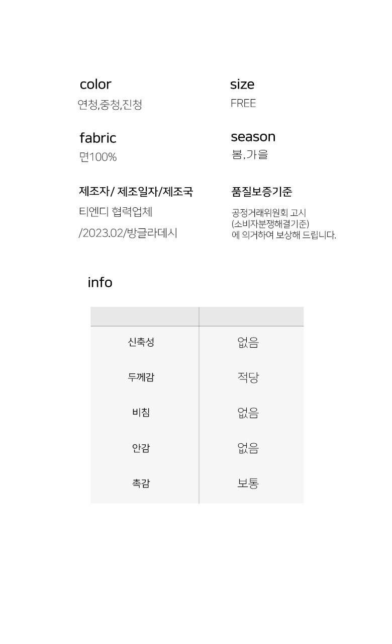 1. 제품 소재 (섬유의 조성 또는 혼용률을 백분율로 표시, 기능성인 경우 성적서 또는 허가서) 상세설명참고