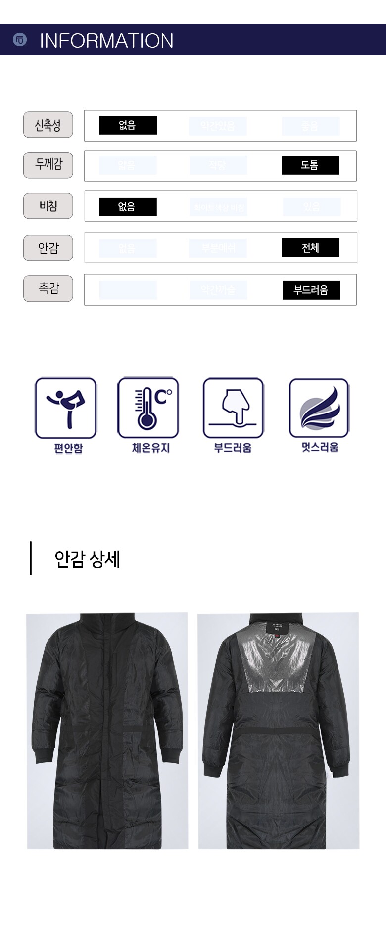 | 1. 제품 소재 (섬유의 조성 또는 혼용률을 백분율로 표시, 기능성인 경우 성적서 또는 허가서) | 상세설명참고 |