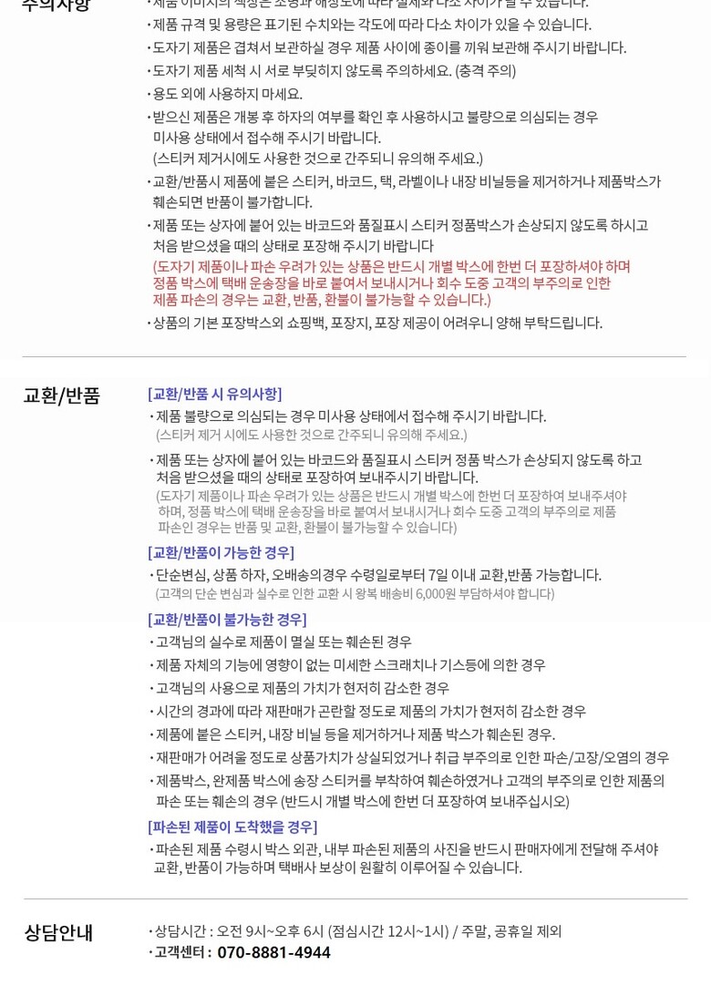 • 업체배송 상품은 해당 각 입점사의 교환정책에 따릅니다.