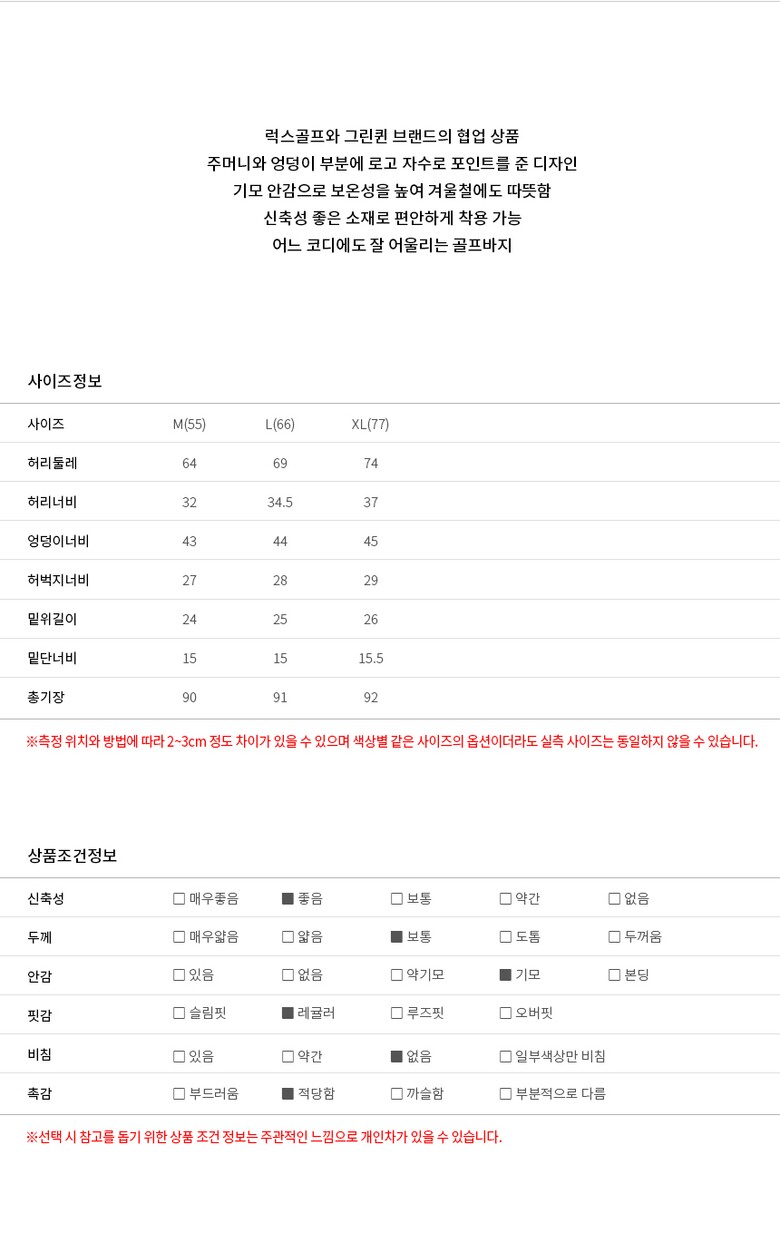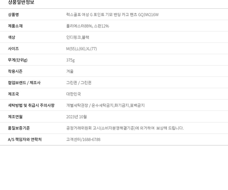 골피아 여성 G 포인트 기모 밴딩 카고 팬츠 GQ3W216W 겨울골프웨어 여자바지 골프옷