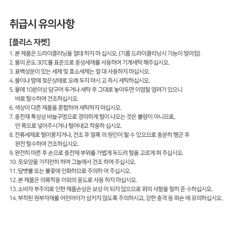 6. 세탁방법 및 취급시 주의사항 드라이클리닝