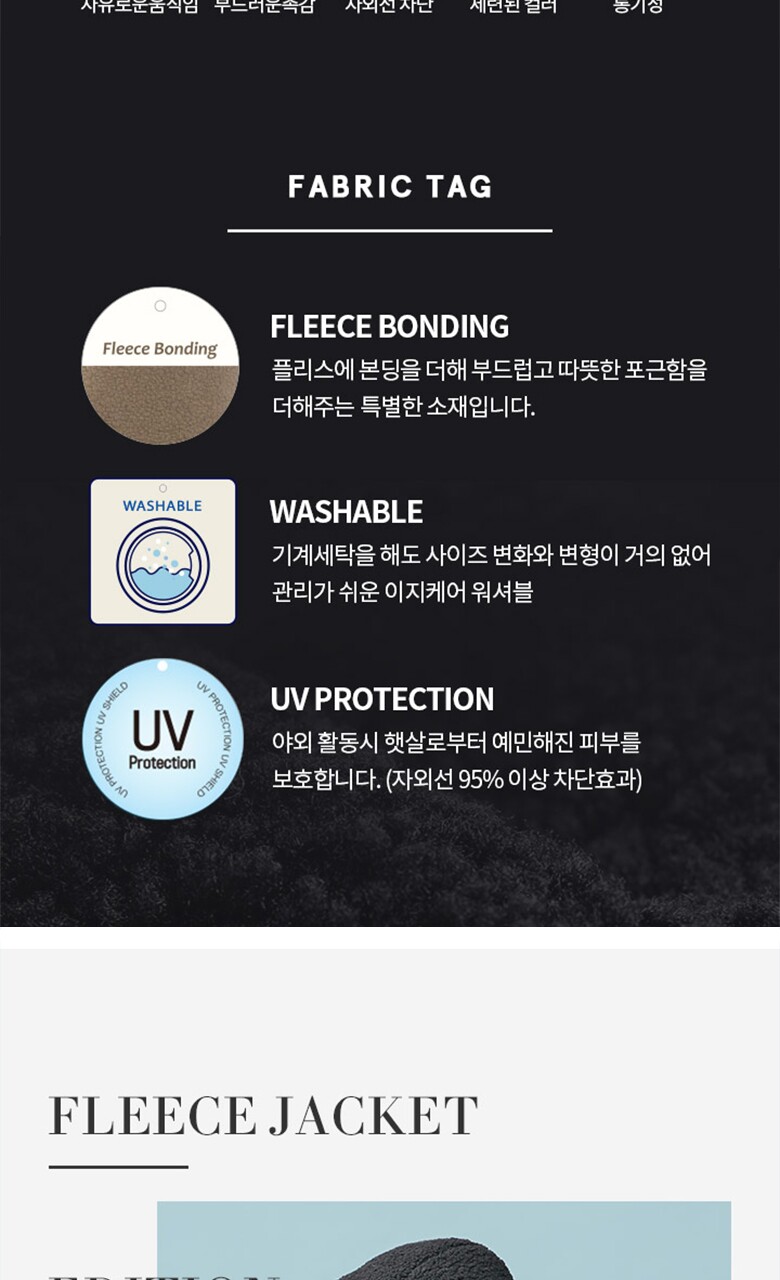 1. 제품 소재 (섬유의 조성 또는 혼용률을 백분율로 표시, 기능성인 경우 성적서 또는 허가서) [겉감] 폴리에스터 100%