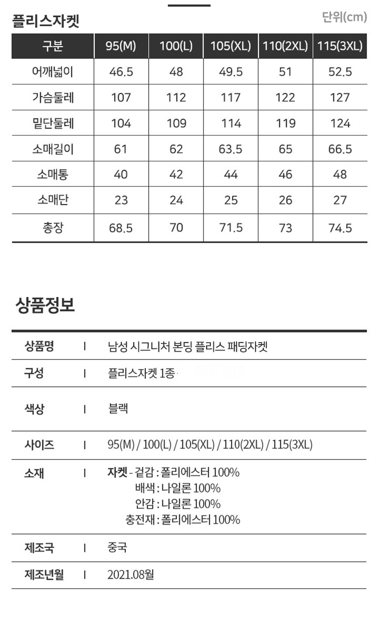 3. 치수 95(M),100(L),105(XL),110(2XL),115(3XL)