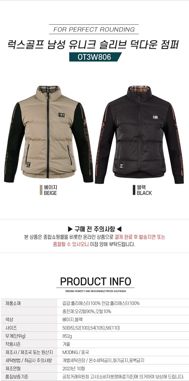 보스케 남성 겨울 골프웨어 골프 덕다운 캐주얼 편한 패딩 점퍼 L122030