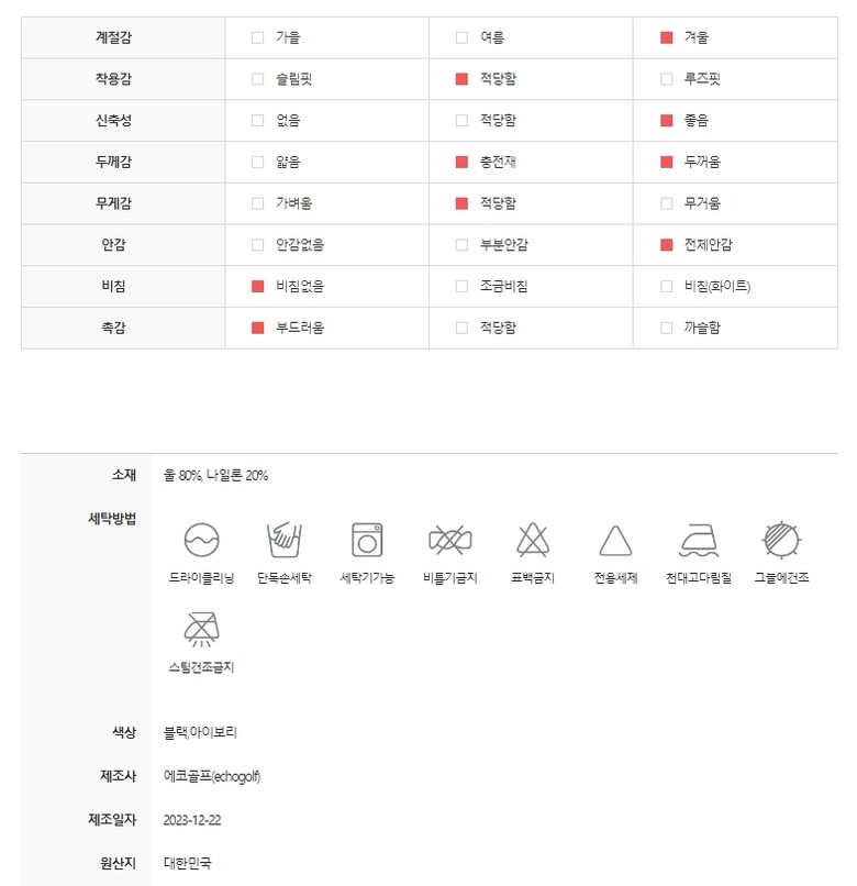 | 6. 세탁방법 및 취급시 주의사항 | 상세이미지 참조 |