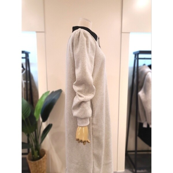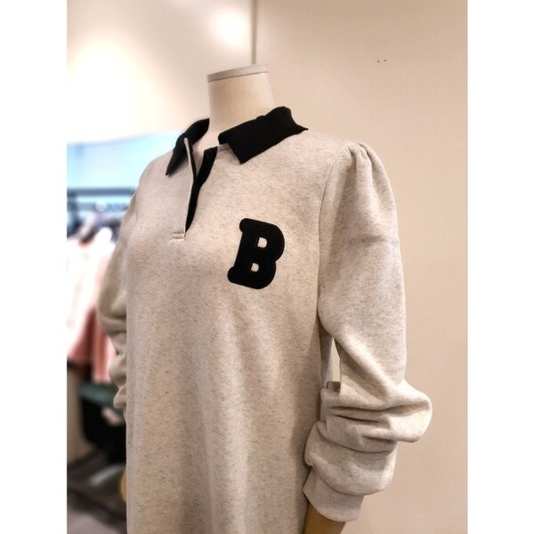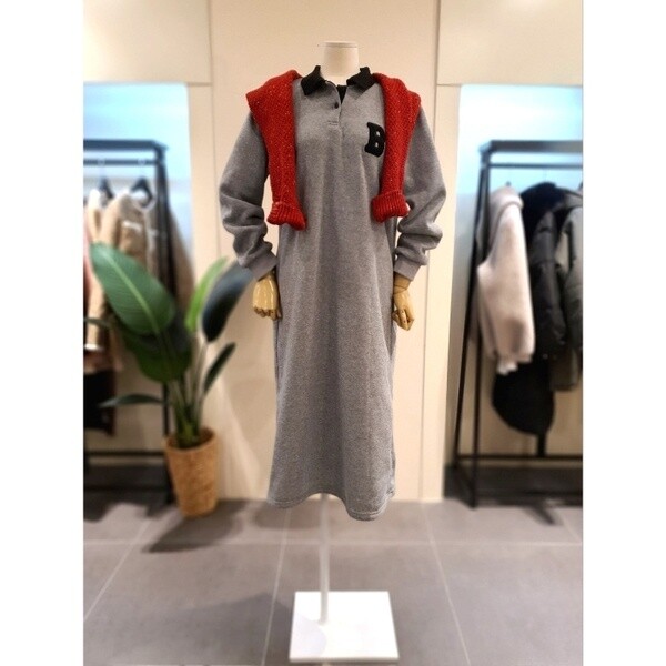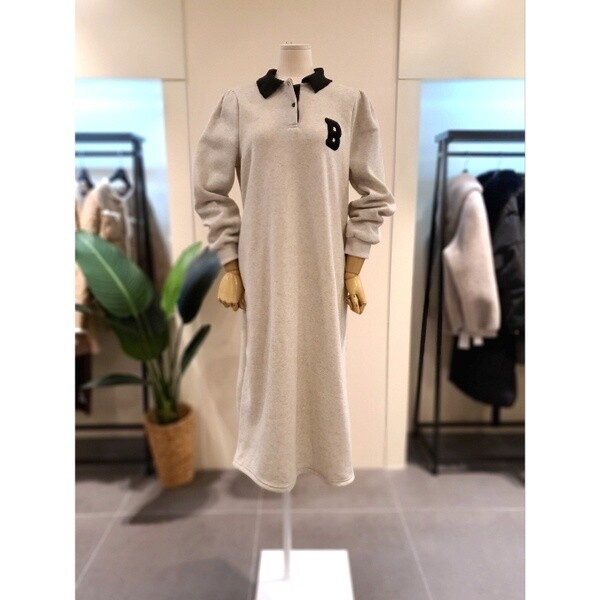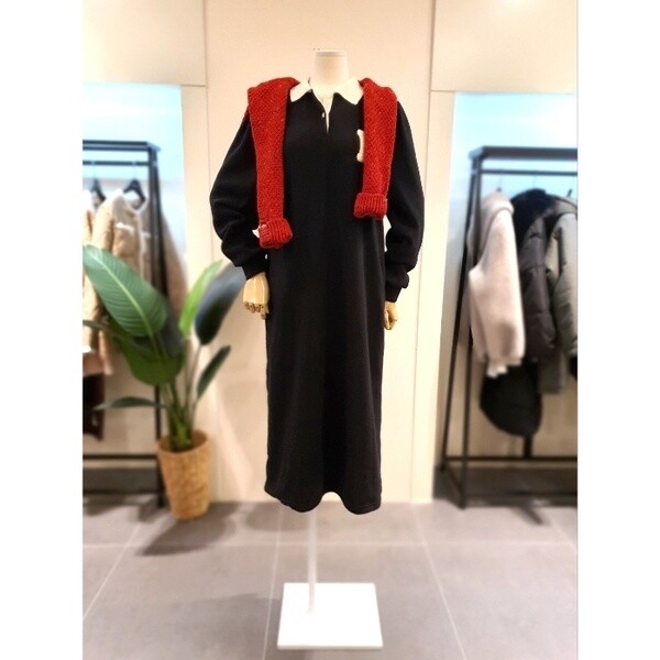 캐주얼한 분위기의 카라넥 기모 원피스입니다. 뽀글 패치로 더욱 포인트가 됩니다.