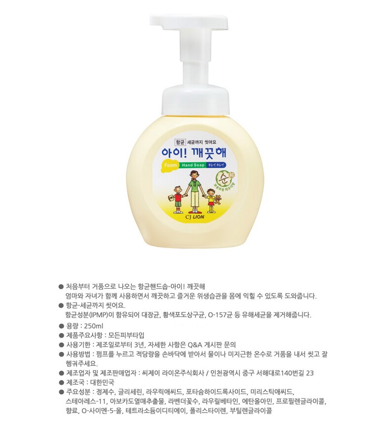 [CJ] 포밍 항균 핸드워시 아이깨끗해 250ml