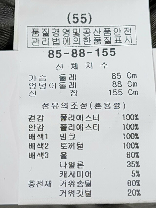 · 안감 : ■ 전체 □ 부분 □ 없음