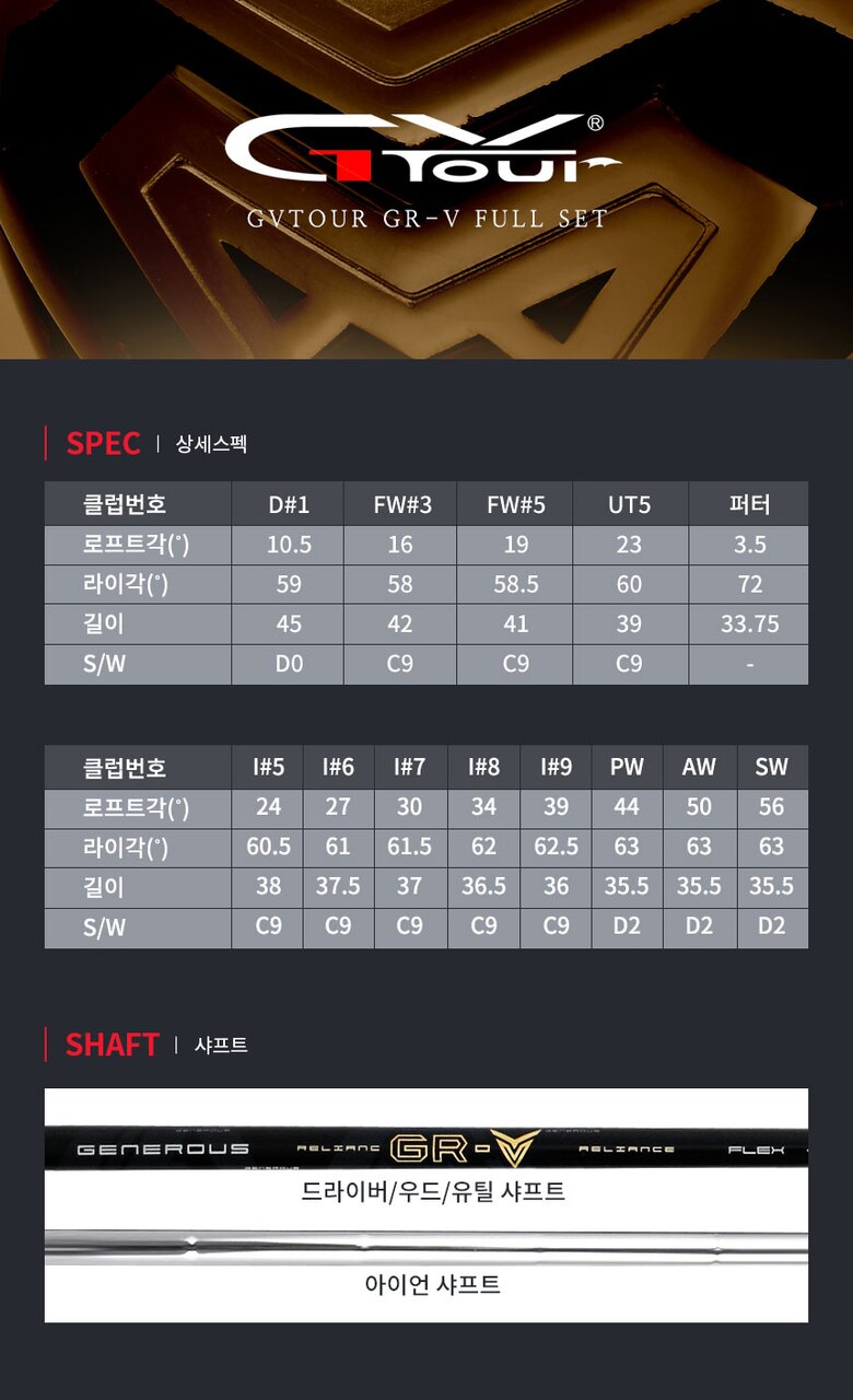| 1. 품명 및 모델명 | 지브이투어 GR-V 왼손용 풀세트 |