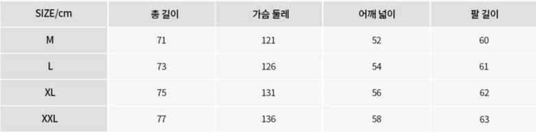 자세한 사이즈는 상세페이지 하단의 사이즈표를 참조해주세요