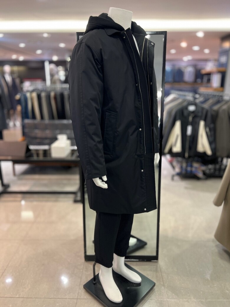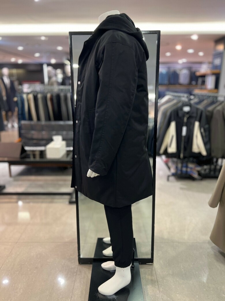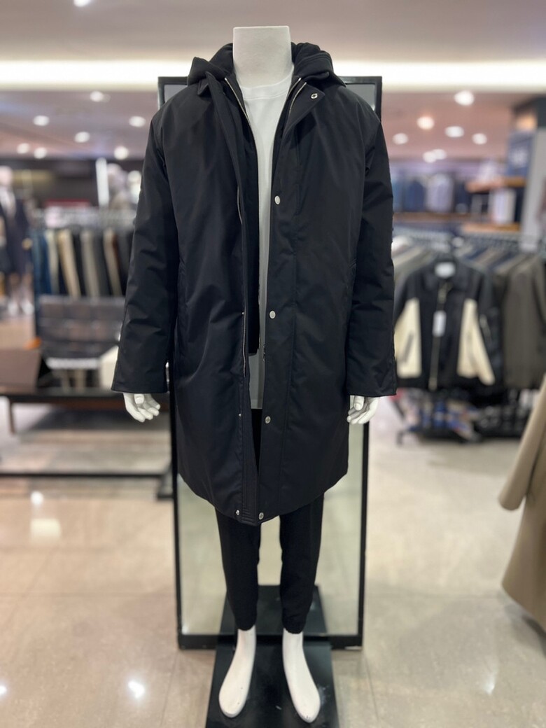 블랙 덕다운 후드 탈부착 파일럿 코트