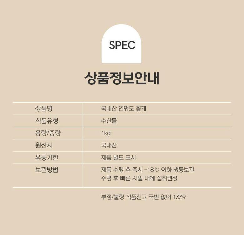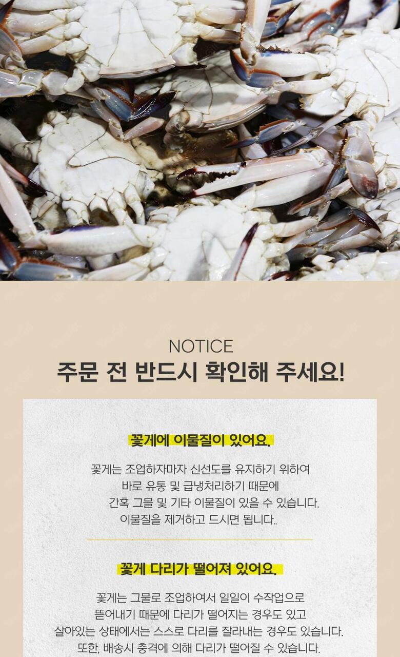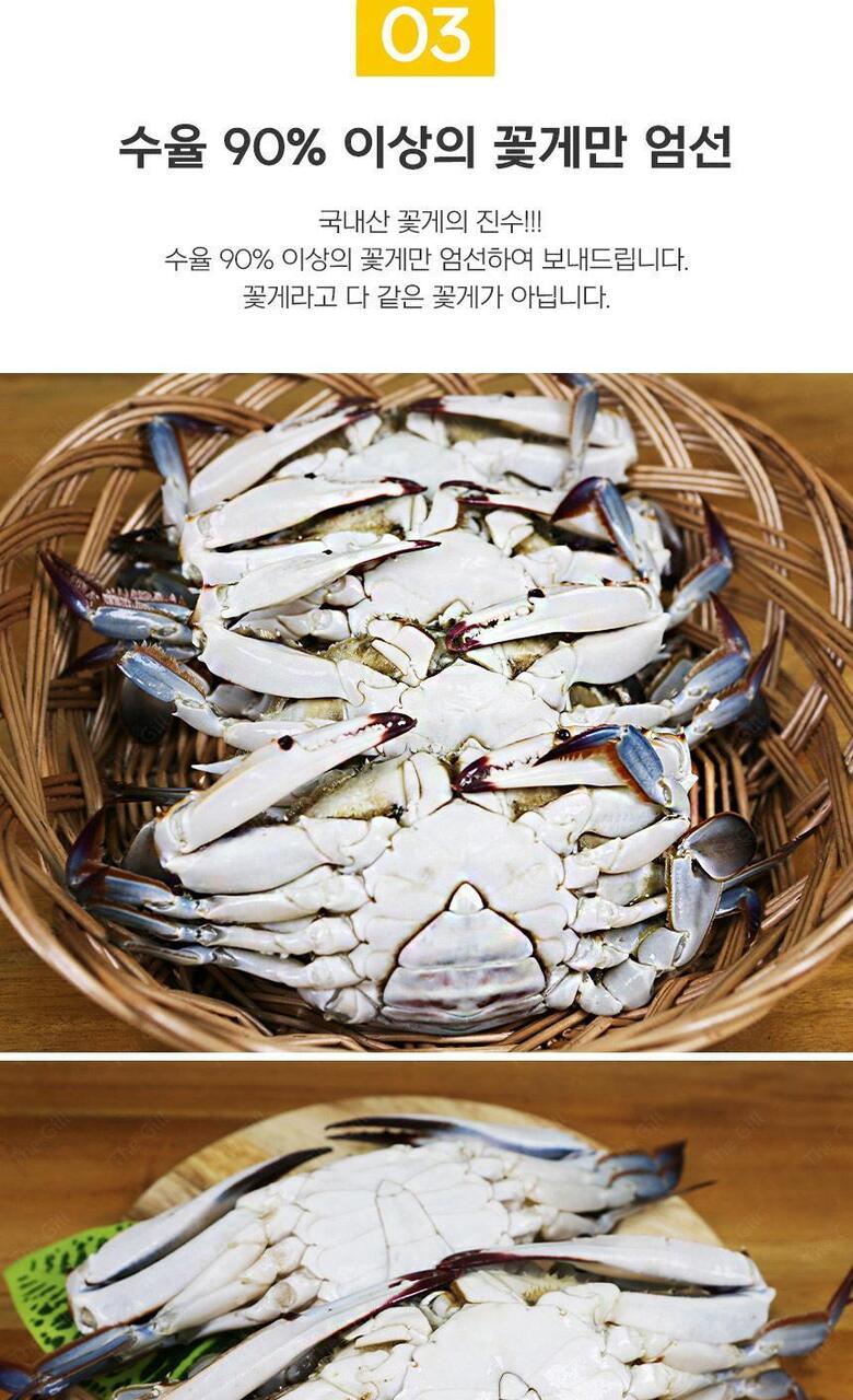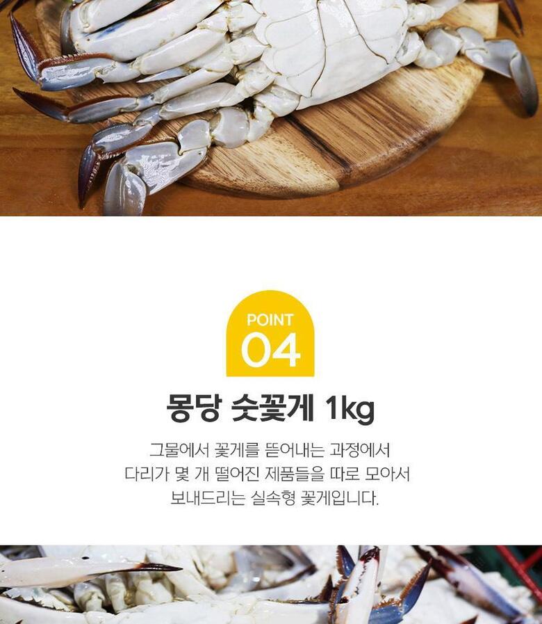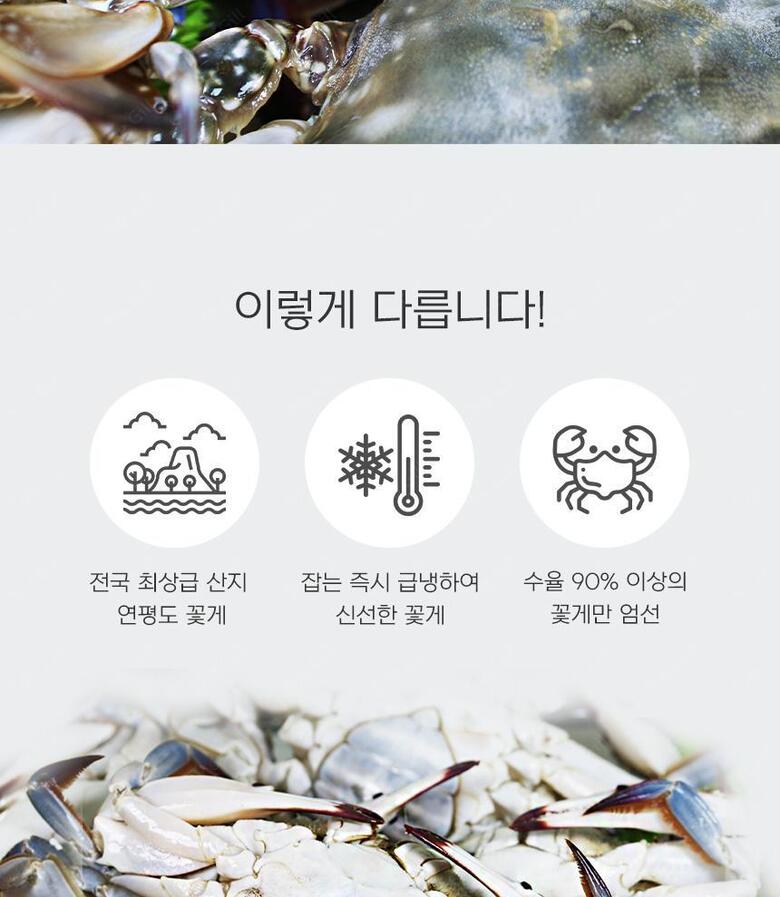 해당 상품은 [ 국내산 연평도 몽당 숫꽃게 1kg 수율 90%이상 ] 구성의 상품입니다.