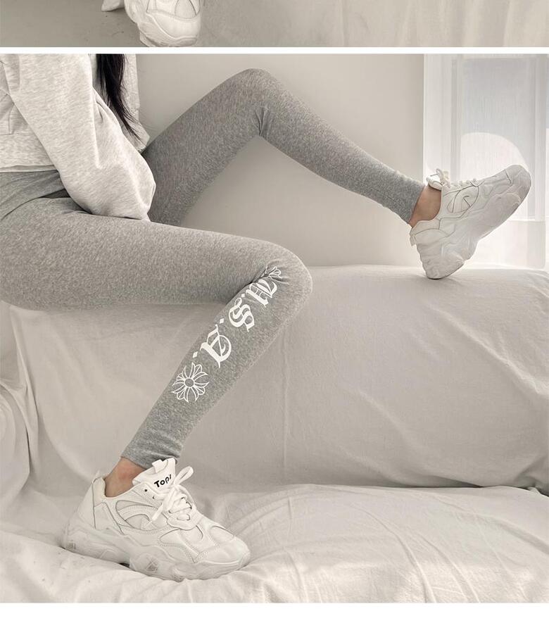 에퀴르 여성 편한 하이웨스트 레터링 데일리 면 타이즈 레깅스