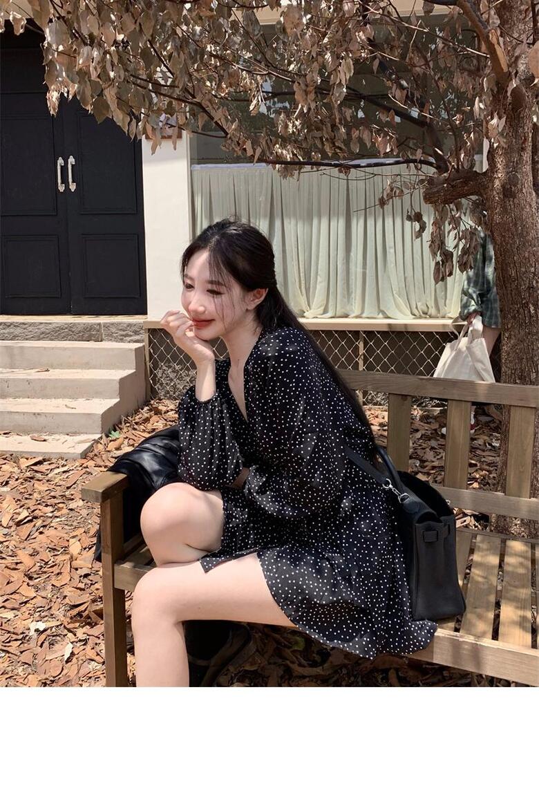 에퀴르 여성 봄 가을 브이넥 도트 리본 예쁜 데일리 랩 미니 원피스
