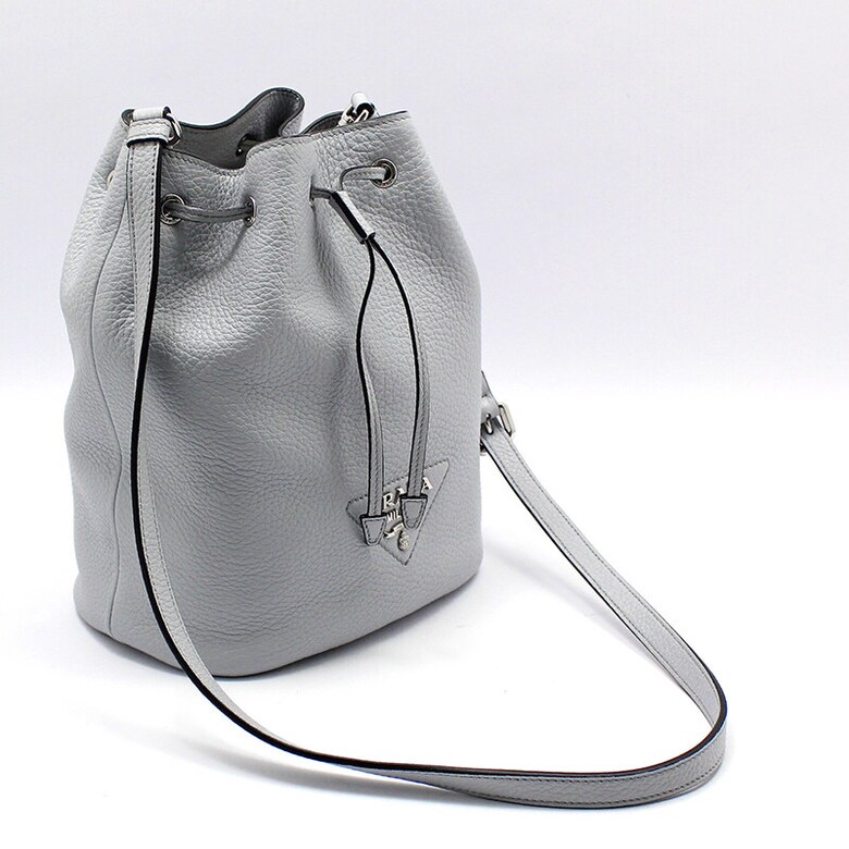 프라다 1BE060 콘플라워 블루 그레이 레더 버킷 크로스백