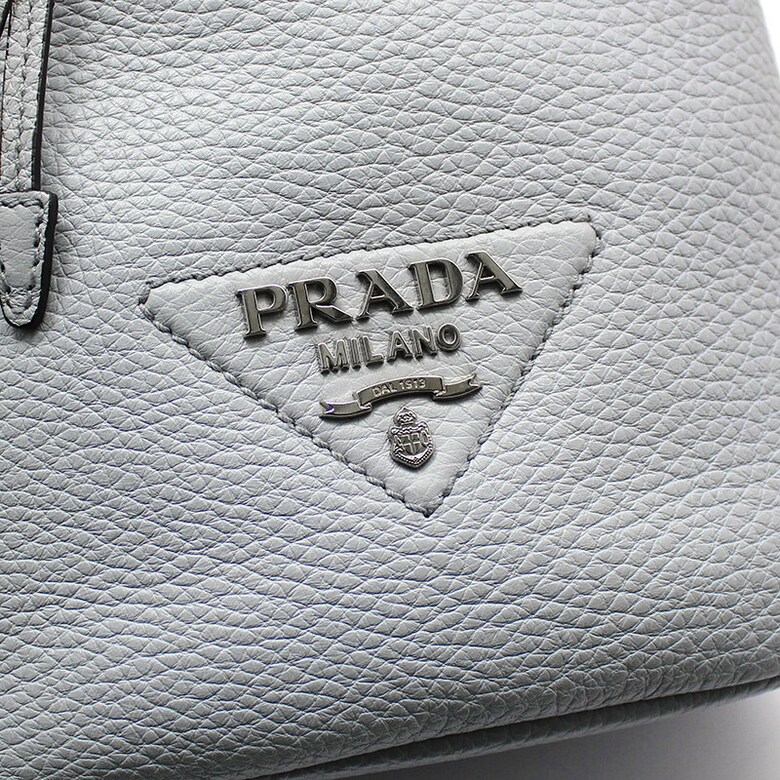 [중고명품] 프라다 1BE060 콘플라워 블루 그레이 레더 버킷백