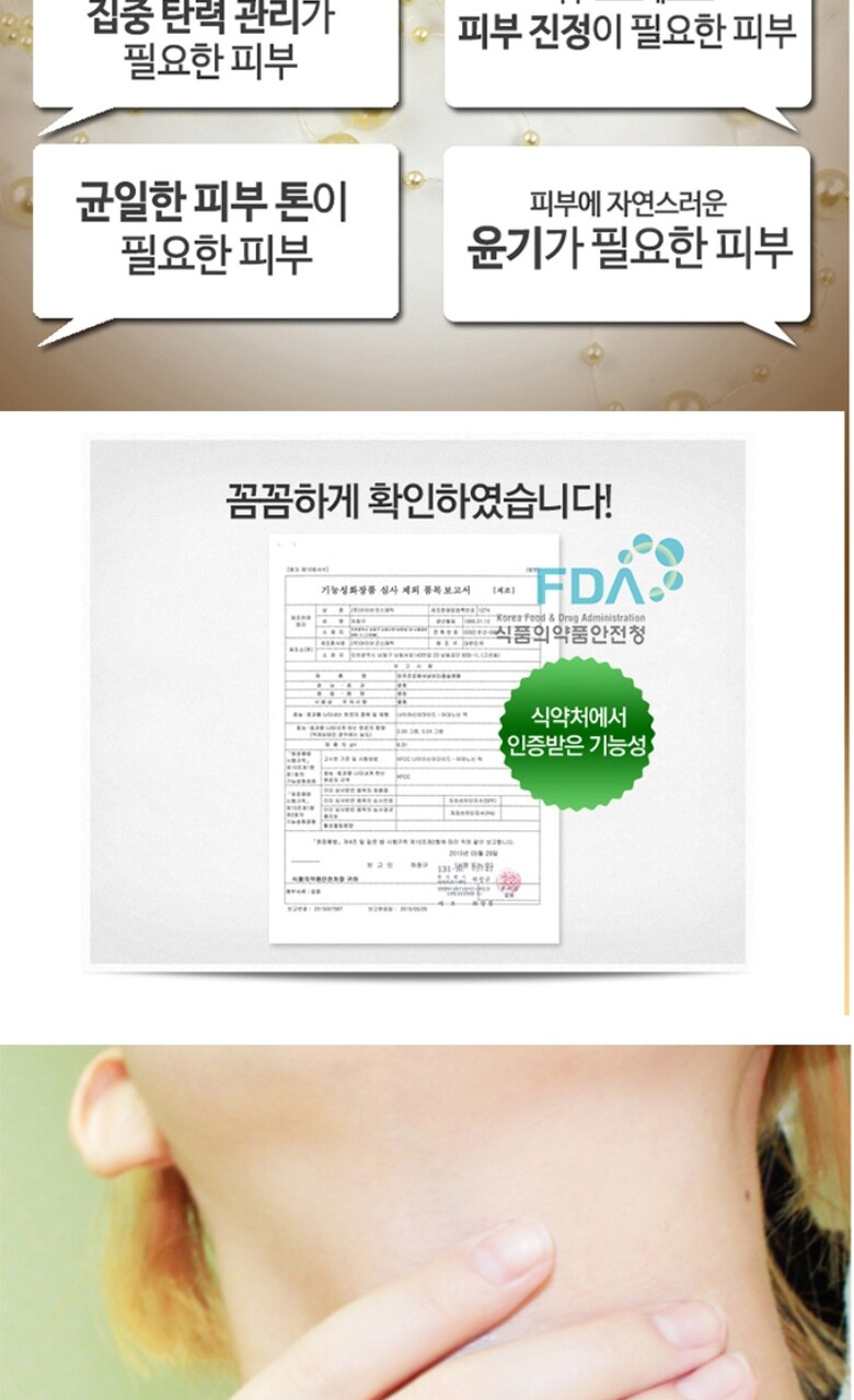 8. 기능성 화장품의 경우 화장품법에 따른 식품의약품안전청 심사 필 유무 | 상세이미지 참조 |
