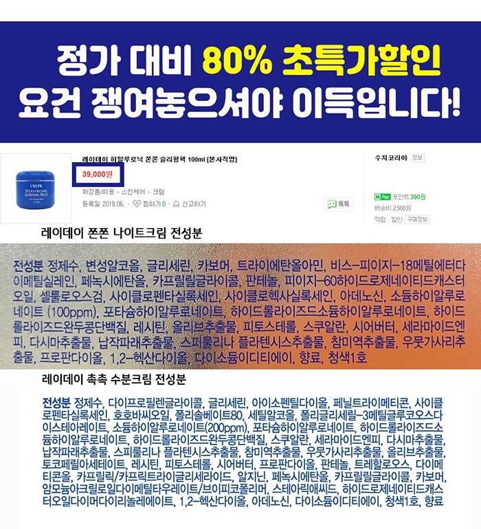 레이데이 히알루로닉 촉촉 수분크림 1+1 / 단품