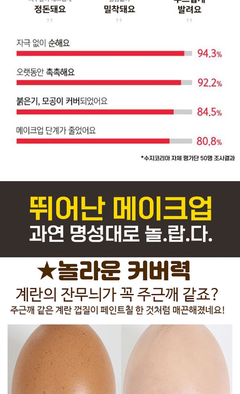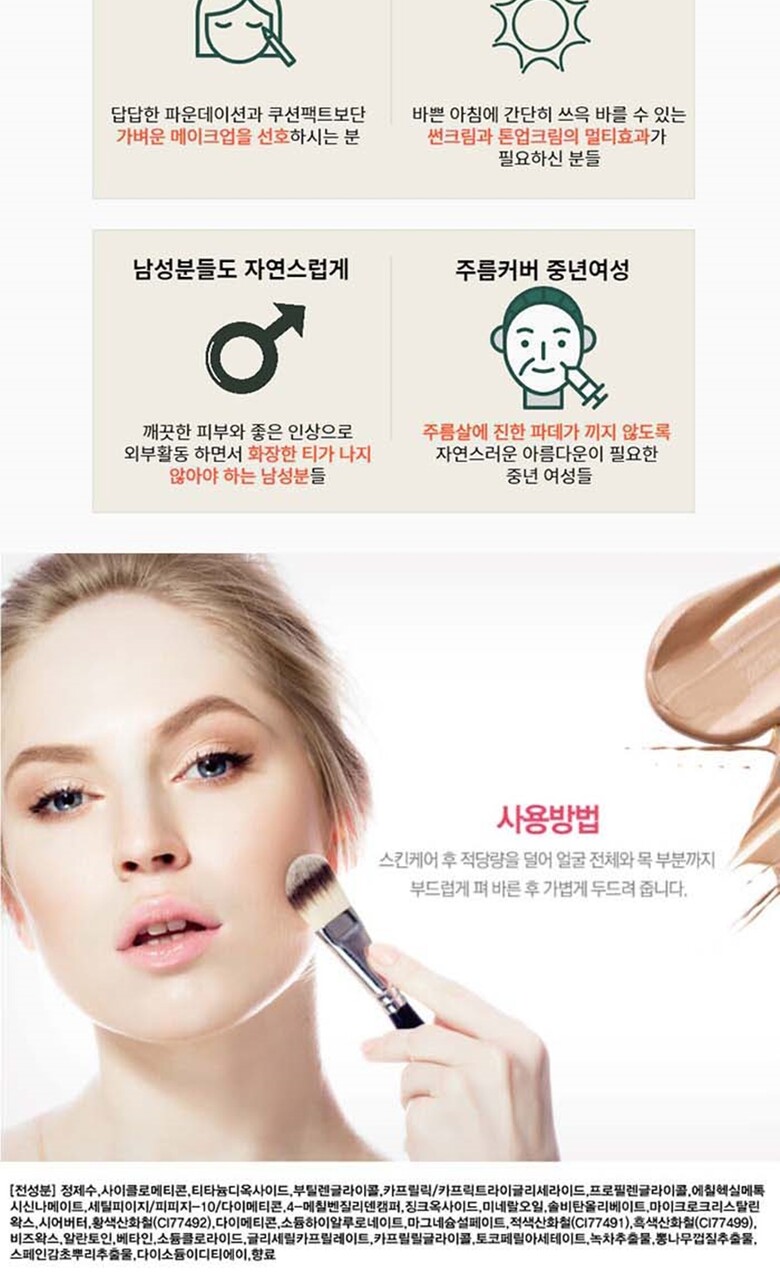 피부에 밀착력이 우수하고 피부색과도 잘 어울려요