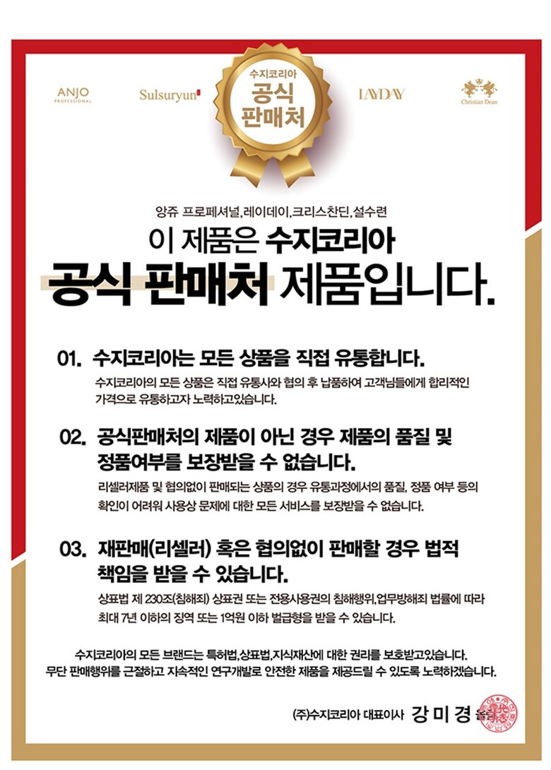 상품불량에 의한 반품, A/S, 품질보증 및 피해보상 등에 관한 사항은 소비자 분쟁해결기준(공정거래위원회 고시) 구매자가 미성년자인 경우에는 상품 구입시 법정대리인이 동의하지 아니하면 미성년자 본인 또는 법정대리인이 구매취소 할 수 있습니다. |