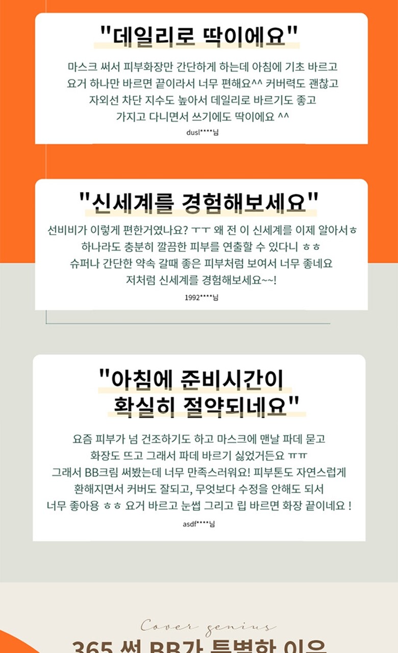 [1+1] 커버천재 앙쥬 365 썬BB크림 (50ml*2개입)