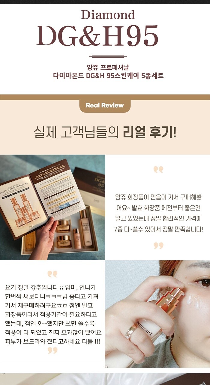 • 앙쥬골드는 매번 선물해드렸더니 좋다고 하시던데 다이아몬드도 좋을것같아 선물드리려고 주문했어요 받아보니 고급스럽고 좋은것같아 언니도 선물해줄려구 재주문할까해요^^