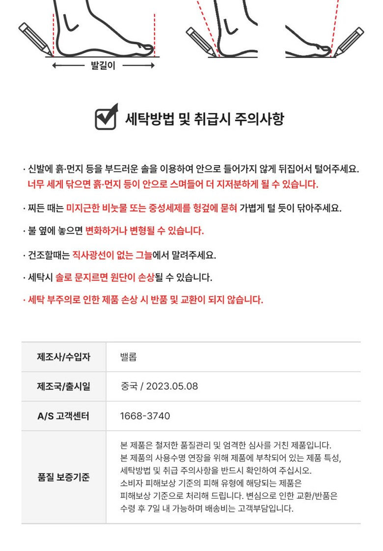 | 7. 세탁방법 및 취급시 주의사항 | 상세페이지 참조 |