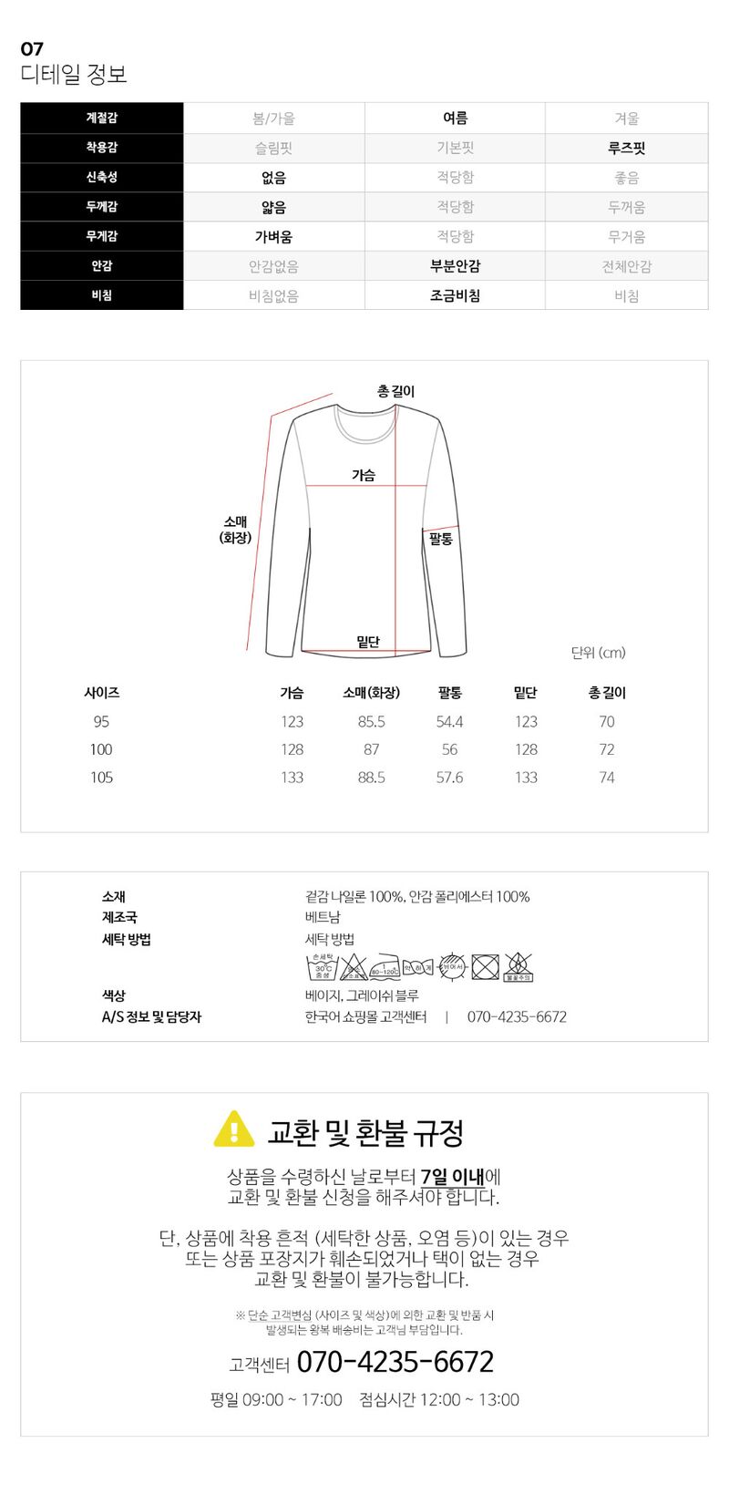 | 6. 세탁방법 및 취급시 주의사항 | 상세페이지참조 |