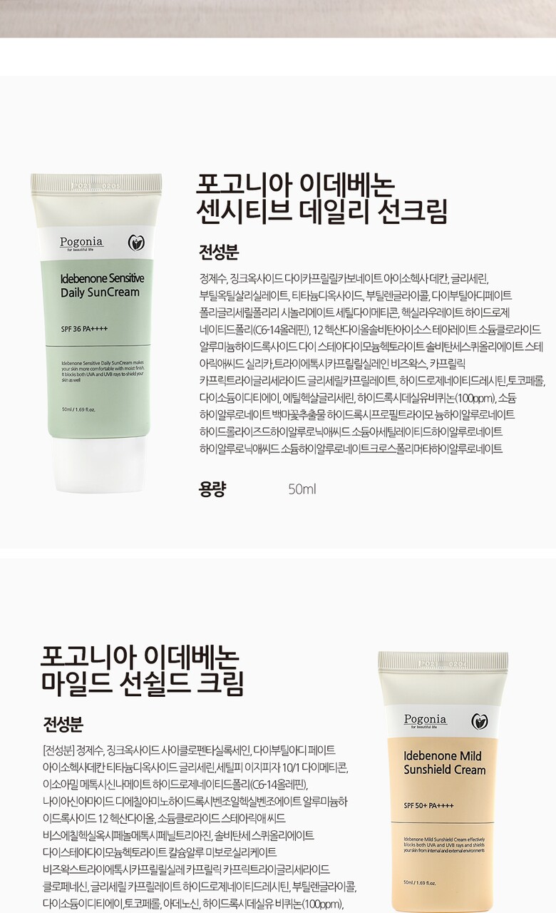 포고니아 이데베논 마일드 선쉴드 크림 50 spf
