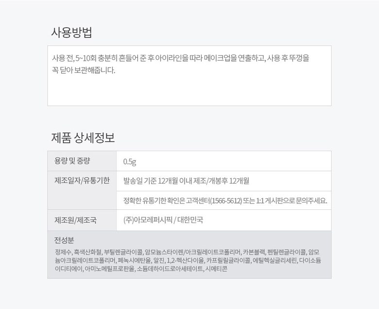 4. 사용방법 | 사용전 5~10회 충분히 흔들어 준 후 아이라인을 따라 메이크업을 연출하고, 사용 후 뚜껑을 꼭 닫아 보관해줍니다. |