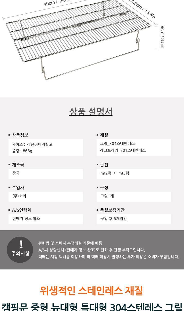 캠핑문 304스텐레스 프리미엄 바베큐그릴 mt045형