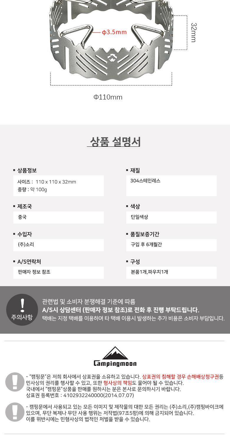 캠핑문 ST132 원형 304스텐레스 스토브 바람막이