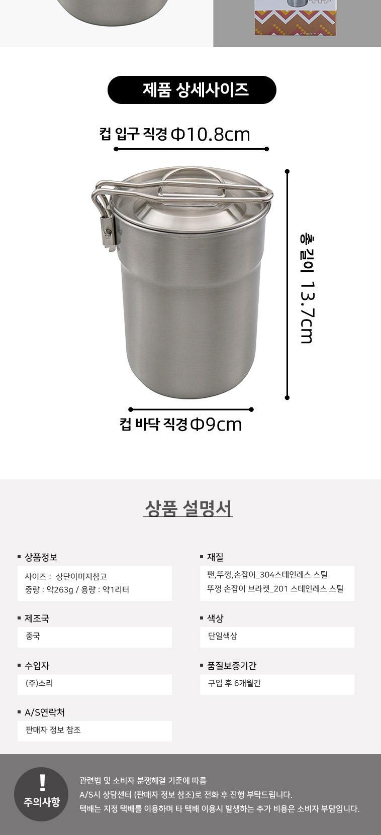 해당 상품은 [ 접이식 304스테인레스 다용도 팬 등산컵 ] 구성의 상품입니다.