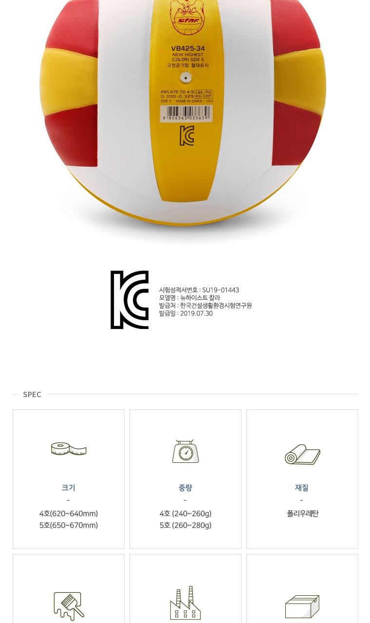 해당 상품은 [ 배구공 뉴하이스트 칼라 5호 ] 구성의 상품입니다.
