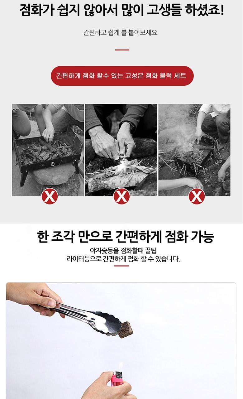 해당 상품은 [ 고성능 점화 블럭 10p 불쏘시개 백패킹 불쏘시개 ] 구성의 상품입니다.