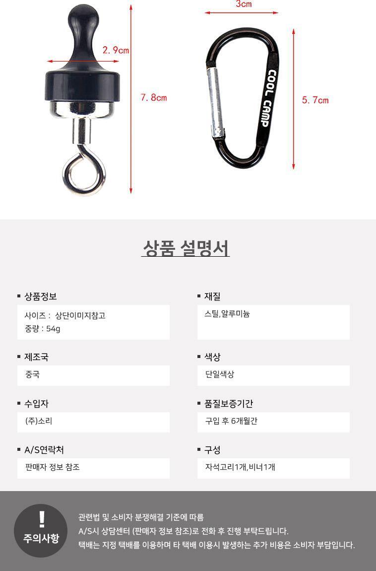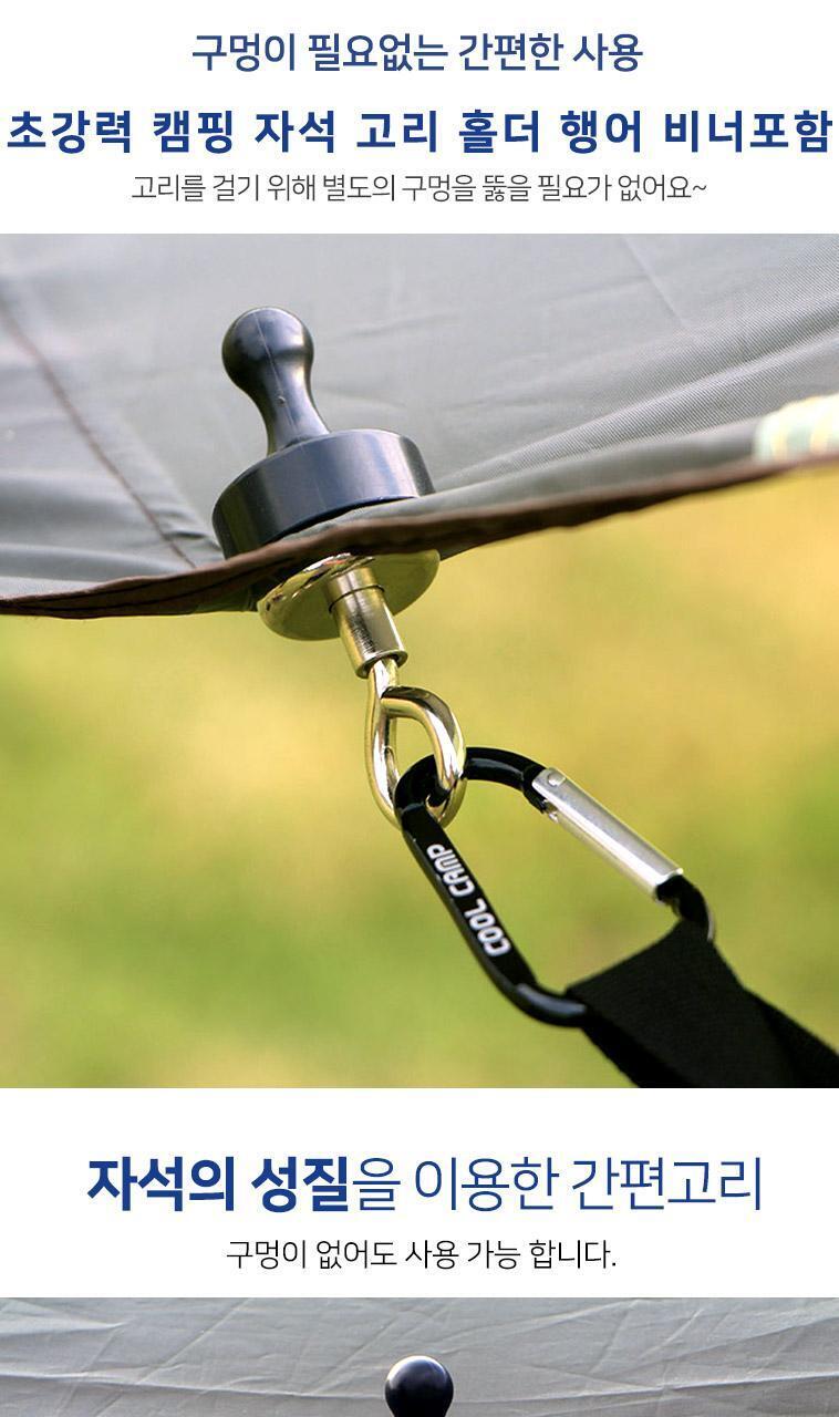해당 상품은 여러가지 구성이 있으니 구매를 원하시는 구성의 상품명과 상세페이지의 내용이 일치하는지 확인 후 구매 부탁드립니다. 해당 상품은 [ 초강력 캠핑 자석 고리 홀더 행어 ] 구성의 상품입니다.